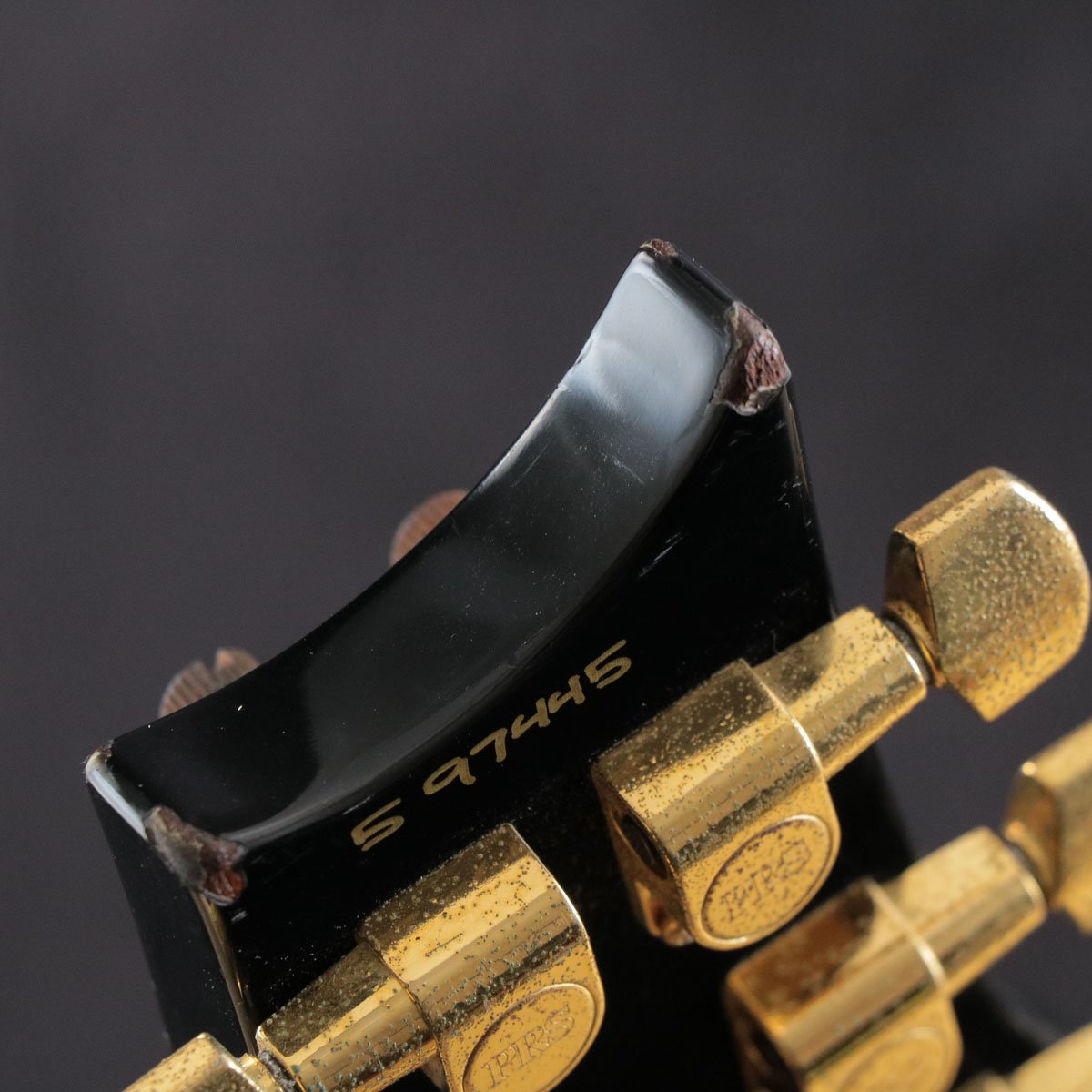 塗装の白濁、ヘッド先の木部欠け、ネック裏3F付近に米粒大の打痕があり、その他パーツのくすみやサビ、ボディ部は擦り傷や打痕、バックル傷が点在し製造年相応の使用感がございます。