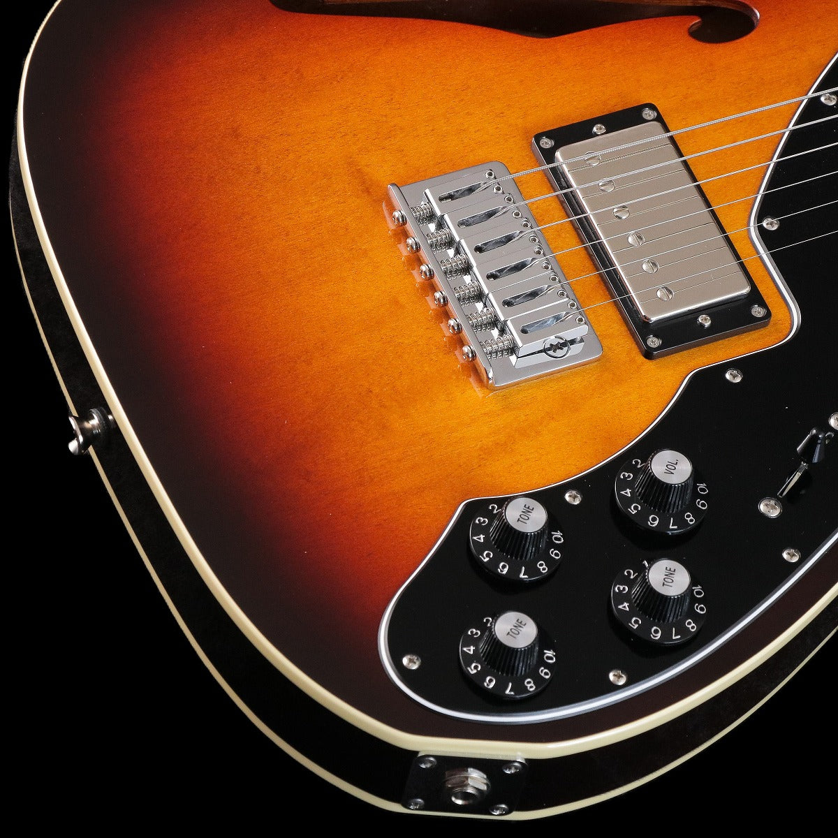 ES-335等のセミアコでも使用されるPlywood Mapleを採用することで、アンプからの出音をコントロールしやすい適度なコンプレッション感と強力なサスティーン、音に芯のあるややタイト目な音の方向性となり、ロック、ポップス、ジャズ、フュージョン、ブルースなど、ジャンルの垣根を越えたプレイヤーを目指すギタリストにオススメです。