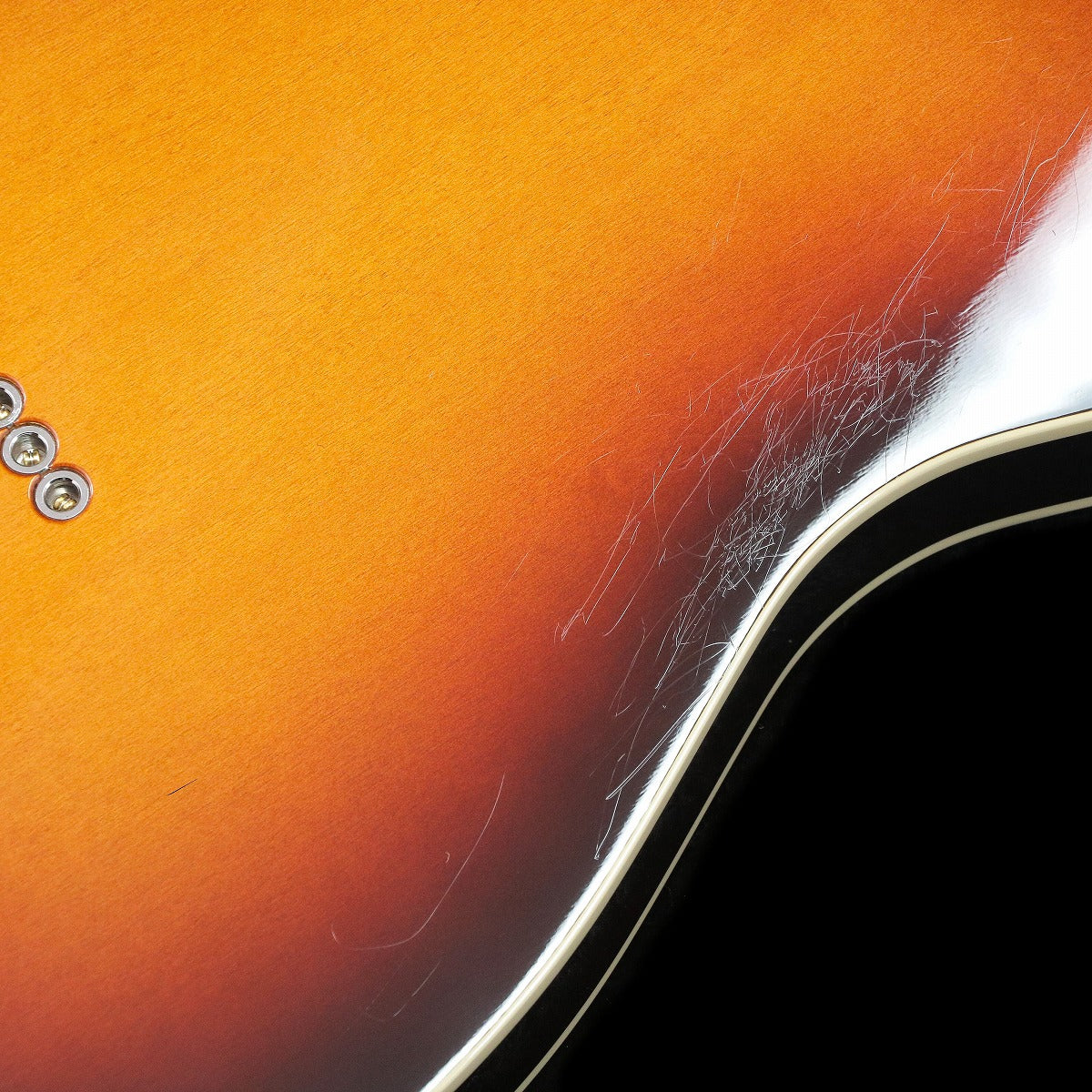 There are some scratches and scuffs, including a ding on the tip of the head, but overall the guitar is in good condition with little signs of use.