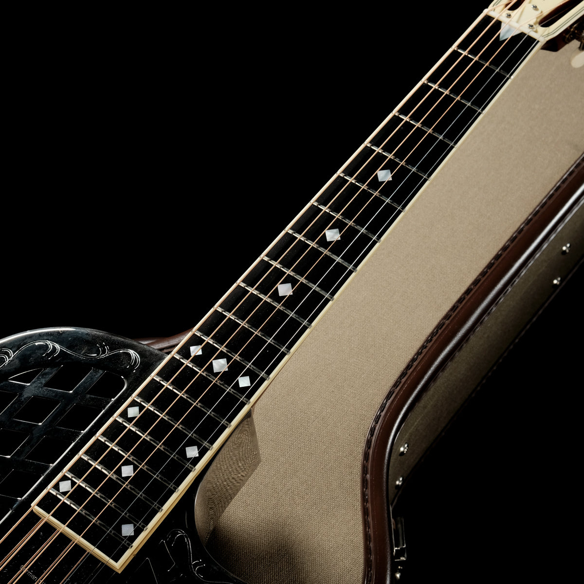 ボディ内部には共鳴部である"コーンが3つ(Tricone)"搭載されており、シングルコーンと比較をすると3つのコーンがそれぞれ共鳴することによって起こる複雑で揺れる様な響きと奥行きを感じ、重厚でしっとりとしたサウンドが特徴です。