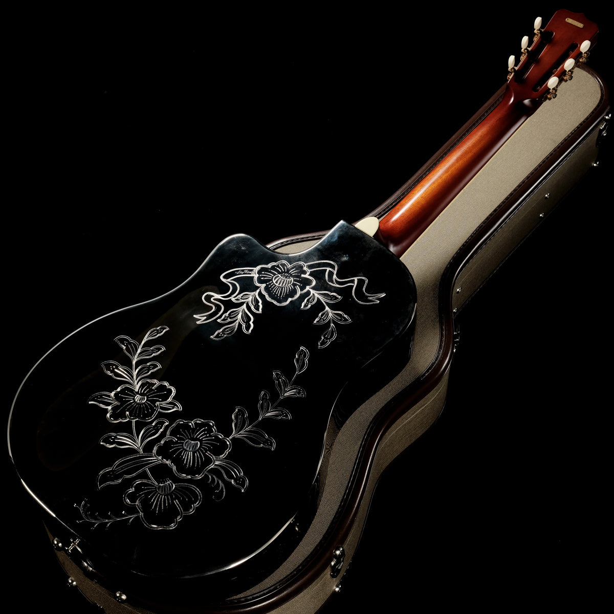 This guitar is one of the rare custom-ordered "National Custom" guitars available in Japan. The vivid carvings on the entire body and the tetragon inlays on the fingerboard are not included in the general specifications, and are the result of the previous owner's obsession with the instrument.