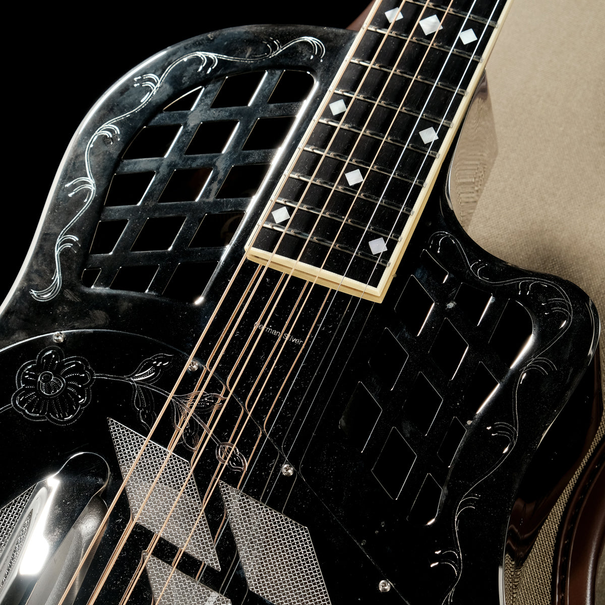 希少なNational Customでございますので、華やかなデザインと艶のあるトーンを持ったリゾネーターギターをお探しの方は是非。