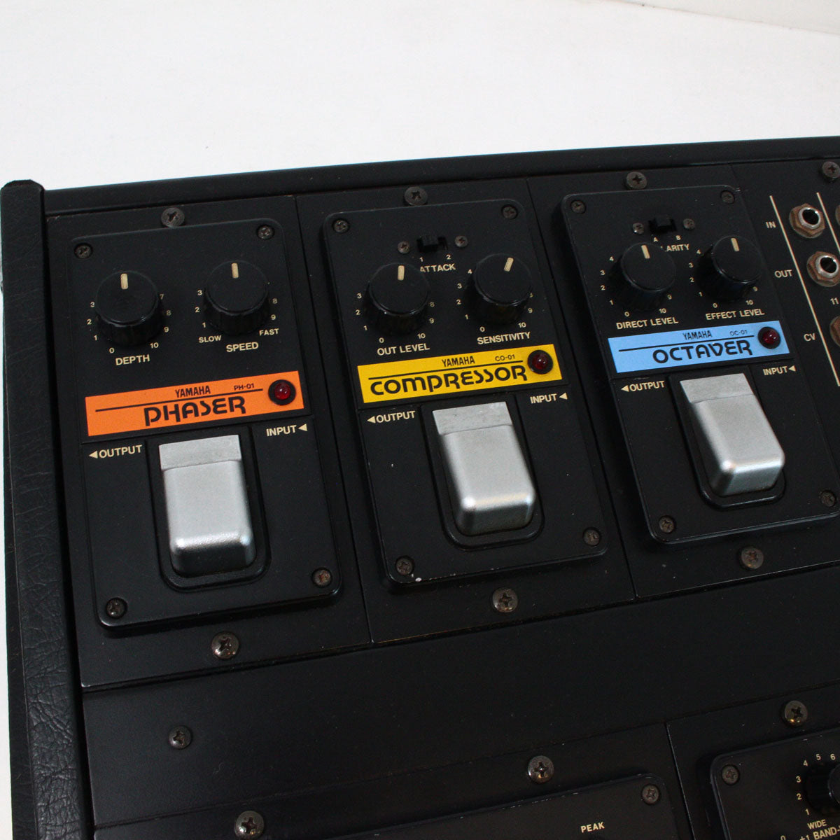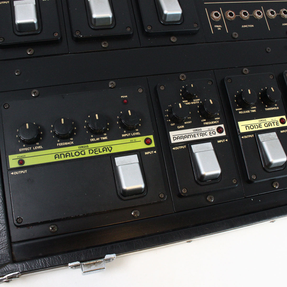 This system board can hold 11 compact effectors from the PSE series released in the 1980s and can be used like a multi-effector.