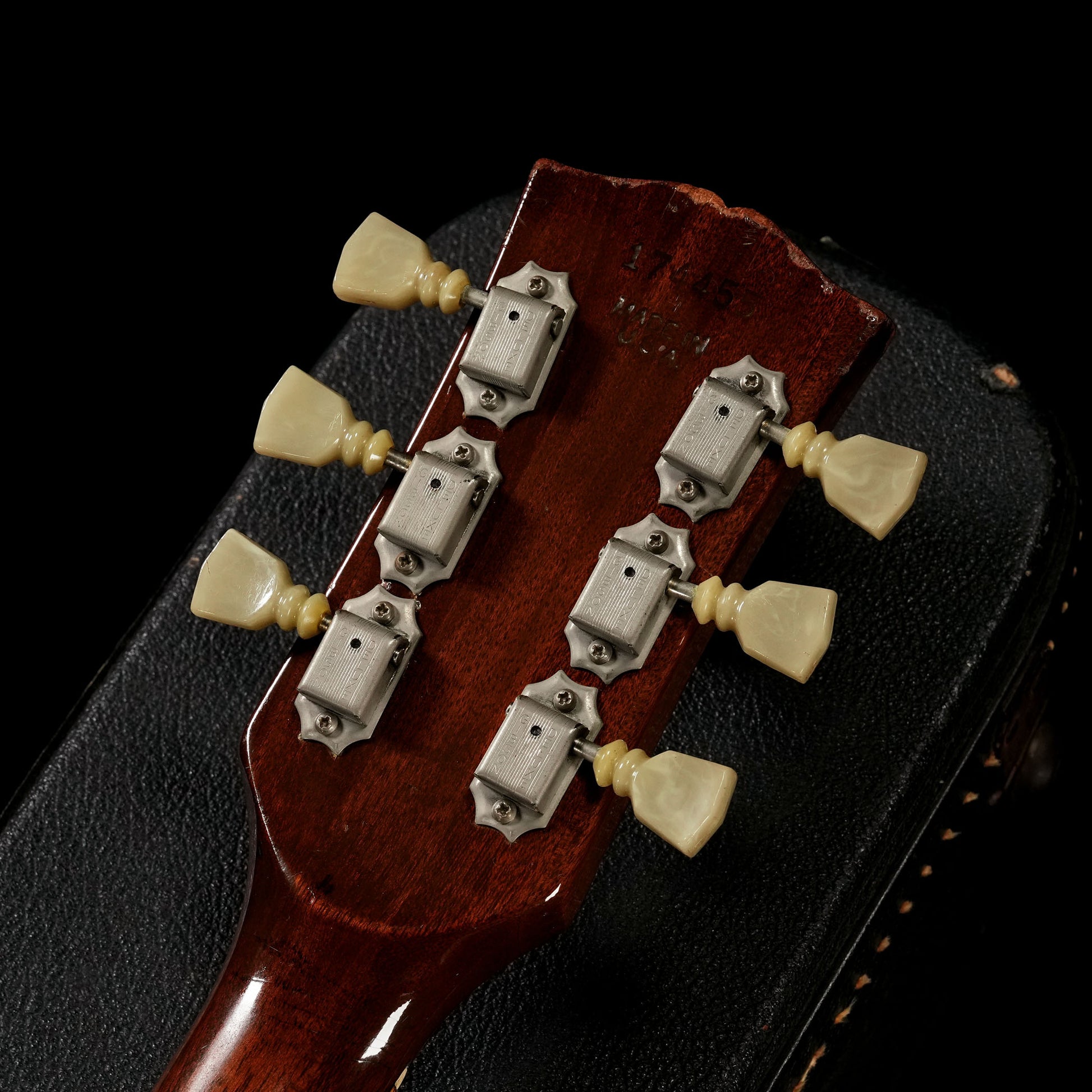 ステッカーナンバードPAF、トラピーズテールピース、マホガニー3ピースネックと随所にオリジナルを残した個体。ポットデイトは73年となります。チューニングキーも、経年変化で曲がってしまっているのですが、オリジナルで現状問題なく使用できます。