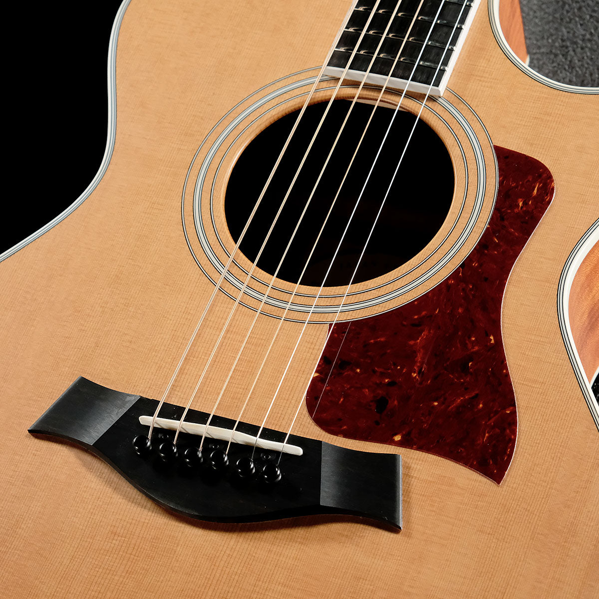 生音でもラインアウトでも優れたサウンドを持つTaylor。抱えやすいボディサイズでサウンドも演奏性も抜群の一本です。