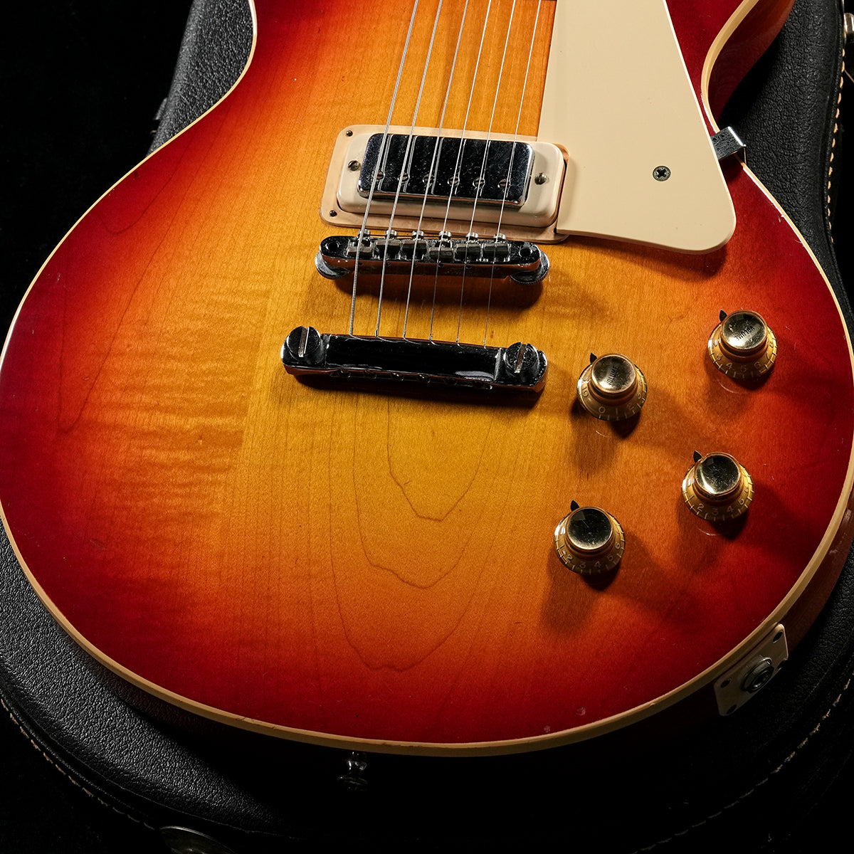 デラックスはLesPaulの再生産より少々後の1969年より販売が開始され、フルサイズハムバッカー搭載のレスポールと比較すると製造期間が短いことや、ミニハムバッカーならではの魅力的なトーンの再評価により年々人気、希少性が高まっている一本。