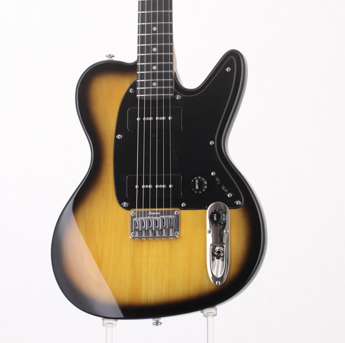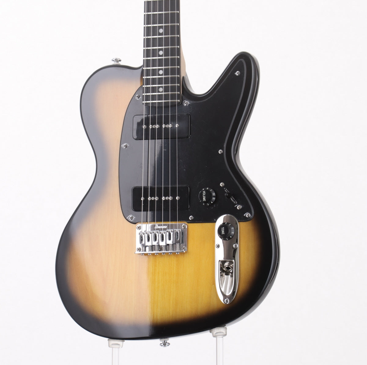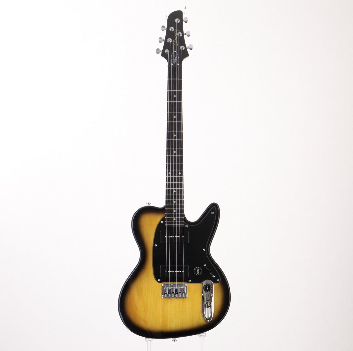 Punk RockシーンのTOPに在り続けながら現在も精力的な活動を展開するTHE OFFSPRINGのヌードルズ・シグネチャー、アイバニーズ・NDM5、2019年製です。長きにわたり愛用されているIbanez Talmanシェイプで、バスウッド・ボディ、メイプル・ネック、エボニー指板、ソープバー・タイプのシングル・ピックアップ(Ibanez Super 9)x2、裏通しハードテイル・ブリッジを採用しています。