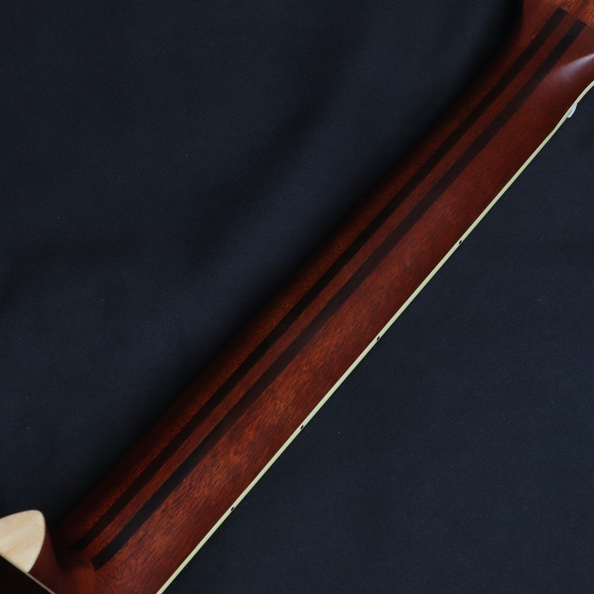 The NECK has been changed from a conventional 3-piece to a 5-piece mahogany and rosewood construction, which is stronger and more resistant to warping and twisting! In addition, the 10th fret has been thinned by 1mm to improve playability in the high position! Furthermore, the fingerboard edge has been rounded to achieve smooth playability that fits comfortably in the hand!