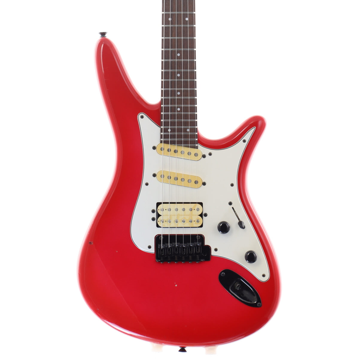 ボディとバインディングの間に段差が生じている箇所が有り、ボディ表に弾きキズが見られ、金属パーツにてくすみやピッツがございます。