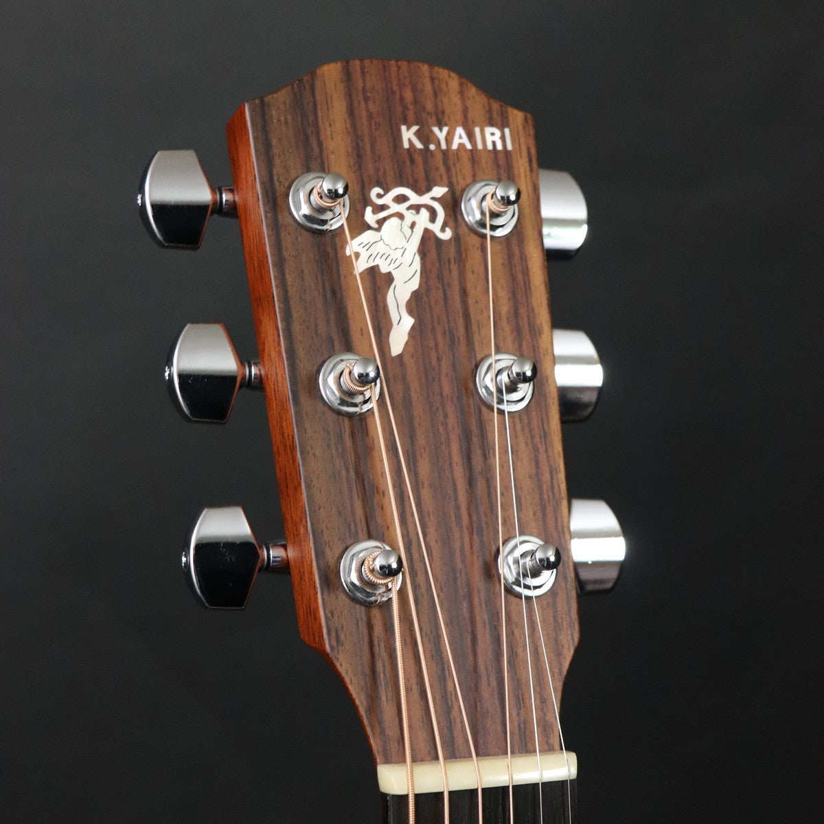 ボディトップにはソリッドスプルースを採用し、サイド&バックにはマホガニーを組み合わせることで、クリアで明るい響きの中に温かみをプラス。小ぶりなボディながらも、K.Yairiならではの豊かな鳴りを楽しめます。