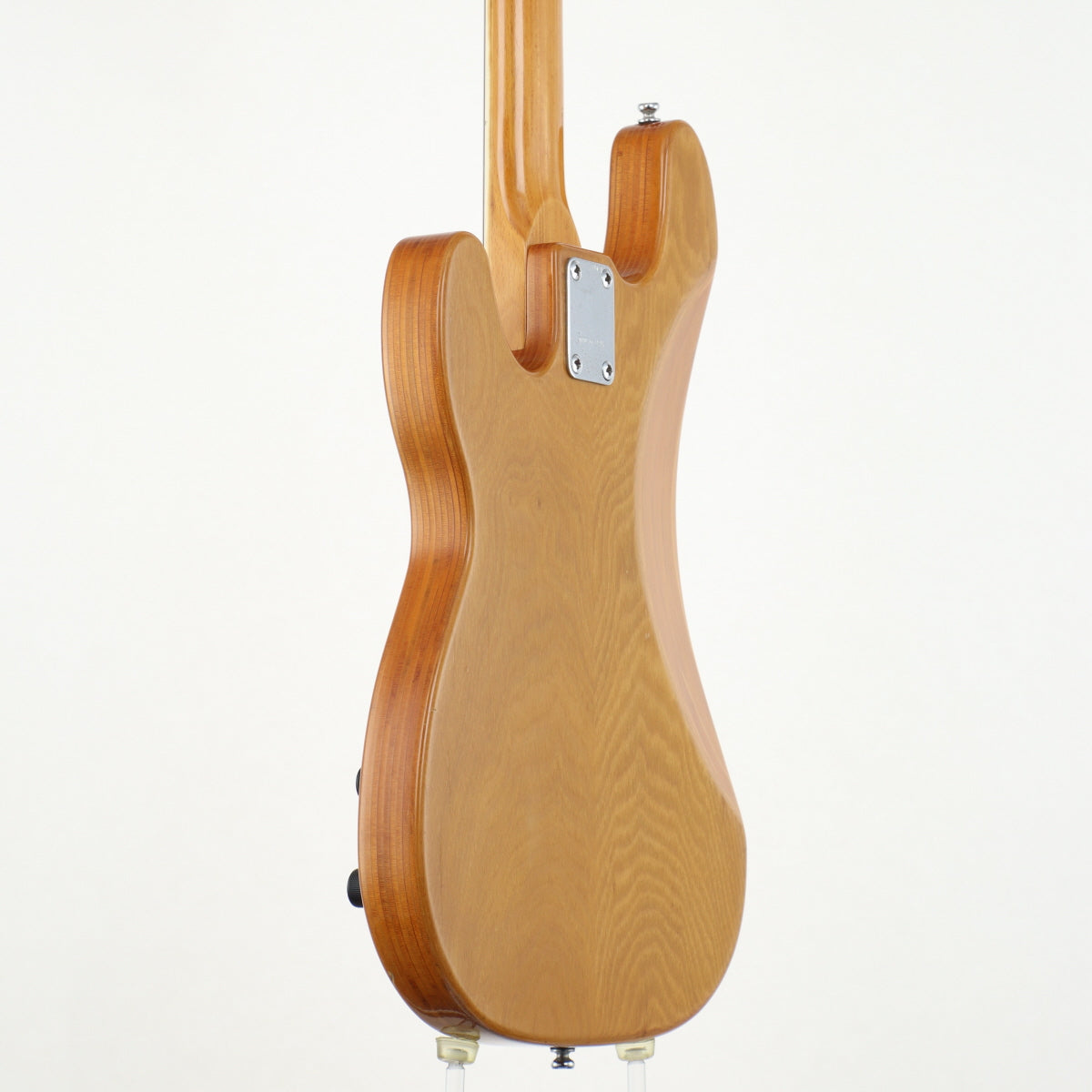ネック裏3Fと8Fに塗装剥がれを伴う打痕があり、ヘッド裏先端部分には小さな木部の欠けや当てキズがあります。フレット交換をしたのか、長さの合ってない短いフレットをローポジションとハイポジションに少々強引に打たれております。また交換の際に指板面がチップしたところもあります。いずれも通常プレイには大きく影響ありませんのでご安心下さい。Bass EQノブ脇にハンダごての先端を当てたのか溶けており、締付けによるピックガードの割れもあります。