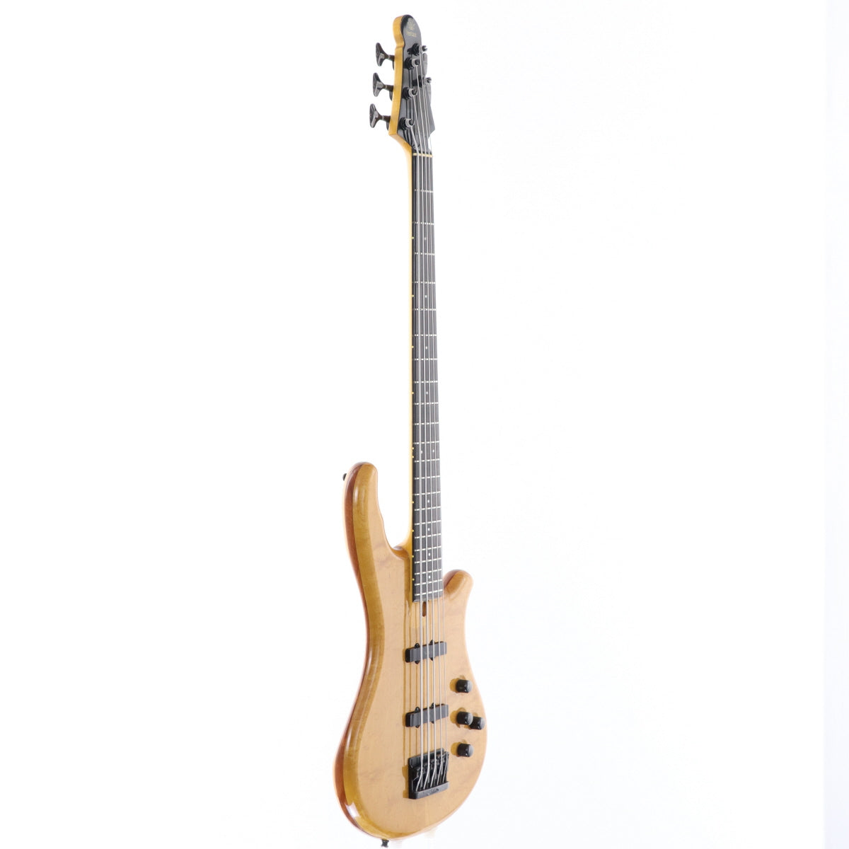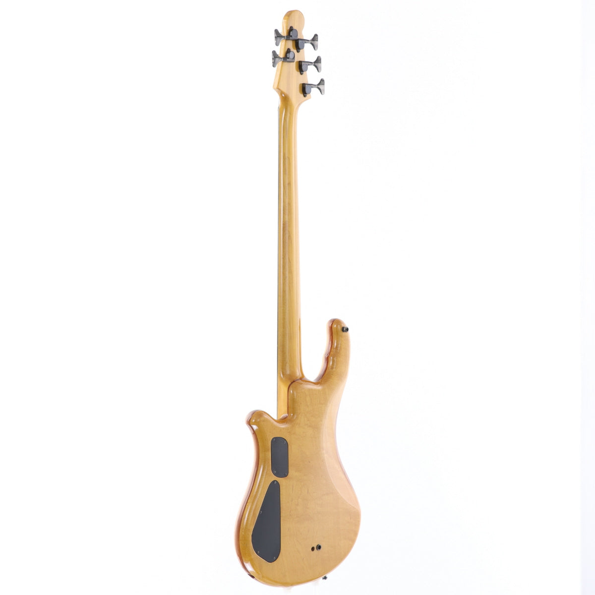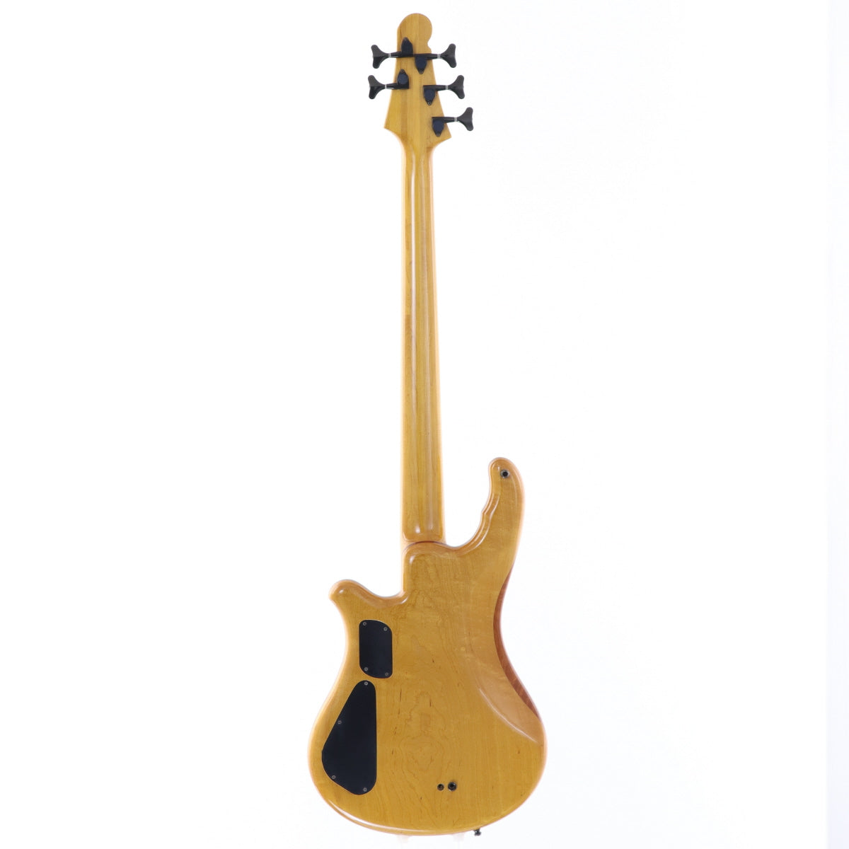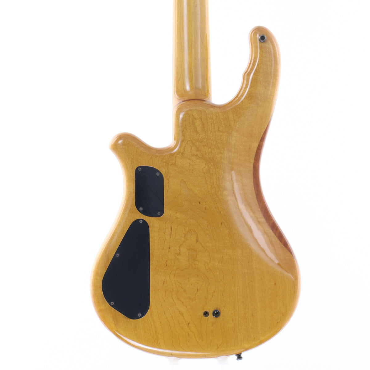ボディはメイプルトップ、カリンセンター、アルダーバックの構成で、バックにはアルダーながら細かな杢が浮かび、ナチュラルフィニッシュに表情豊かな質感を与えています。剛性を高めたメイプルネックとエボニー指板により、低域の安定感とタイトなレスポンスを両立。