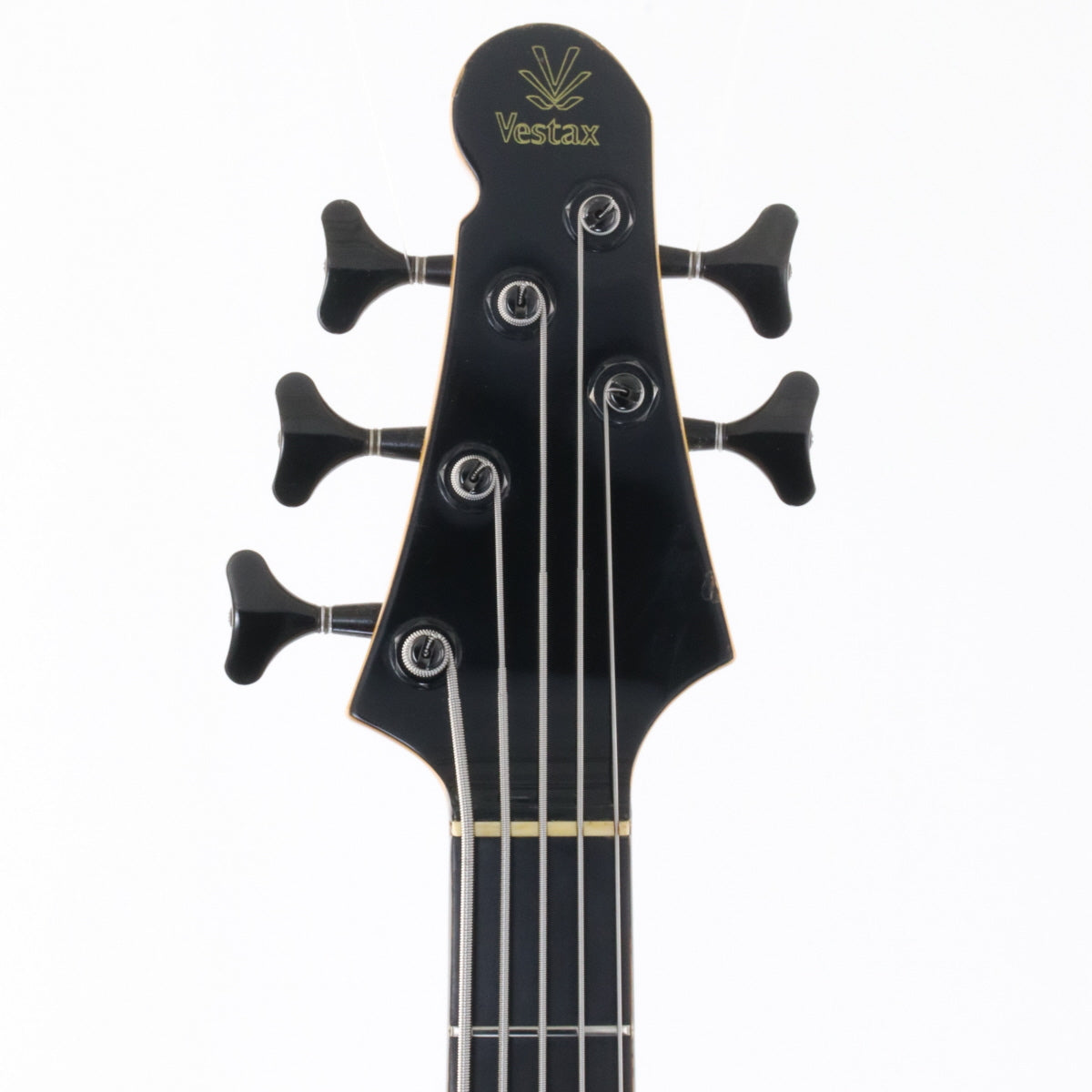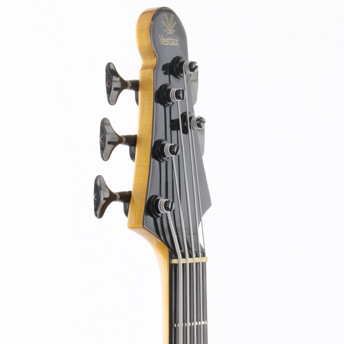 4弦・5弦には別タイプのブッシュが取り付けられており、演奏上の問題はありませんが取り外しは困難です。現在は5弦にテーパード弦を使用しており、裏通しではサドル位置や弦長に不具合が出るため、5弦4弦ともに通常通しでセットアップしております。