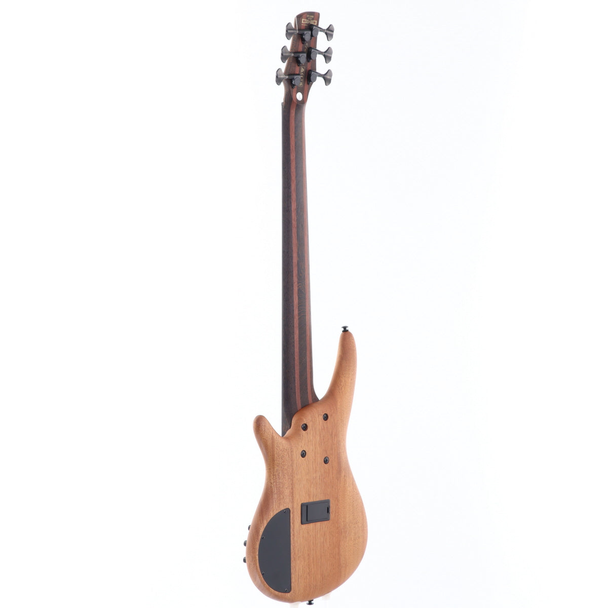ボディはウォルナット/パンガパンガ/メープルトップ、アフリカンマホガニーボディ、パンガパンガ材、パープルハート材をラミネートした5pcネックにパンガパンガ指板を組み合わせた豪華な仕様。