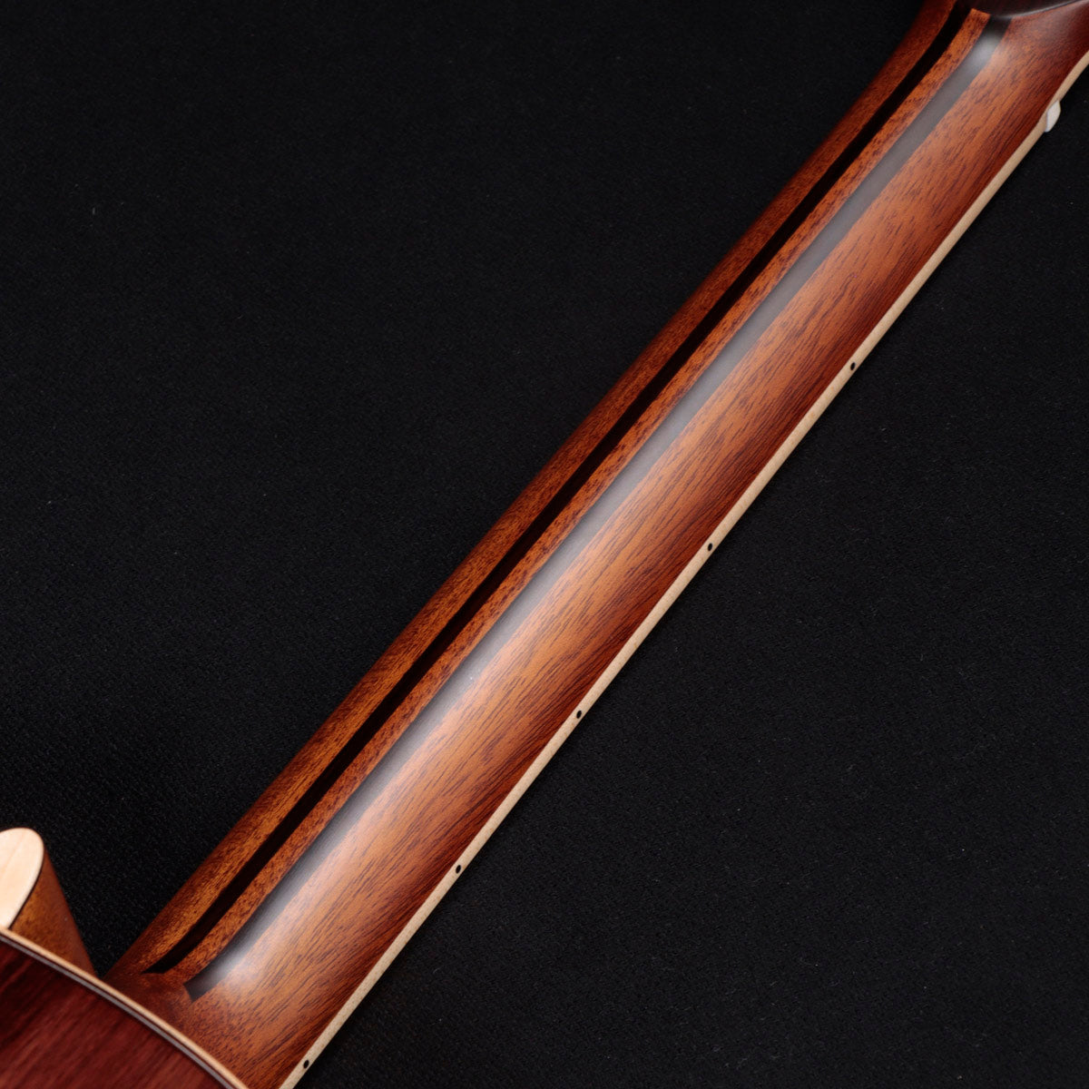 The NECK is made of mahogany and rosewood in a 5-piece construction for greater strength against warping and twisting! In addition, the fretboard is 1mm thinner at the 10th fret to improve playability in the high position! Furthermore, the fingerboard edge has been rounded to achieve smooth playability that fits comfortably in the hand! The back side of the head has been treated with rosewood veneer and volute processing to strengthen the head section!