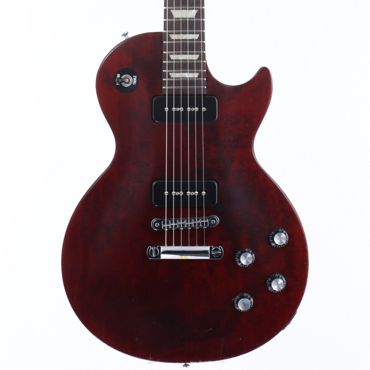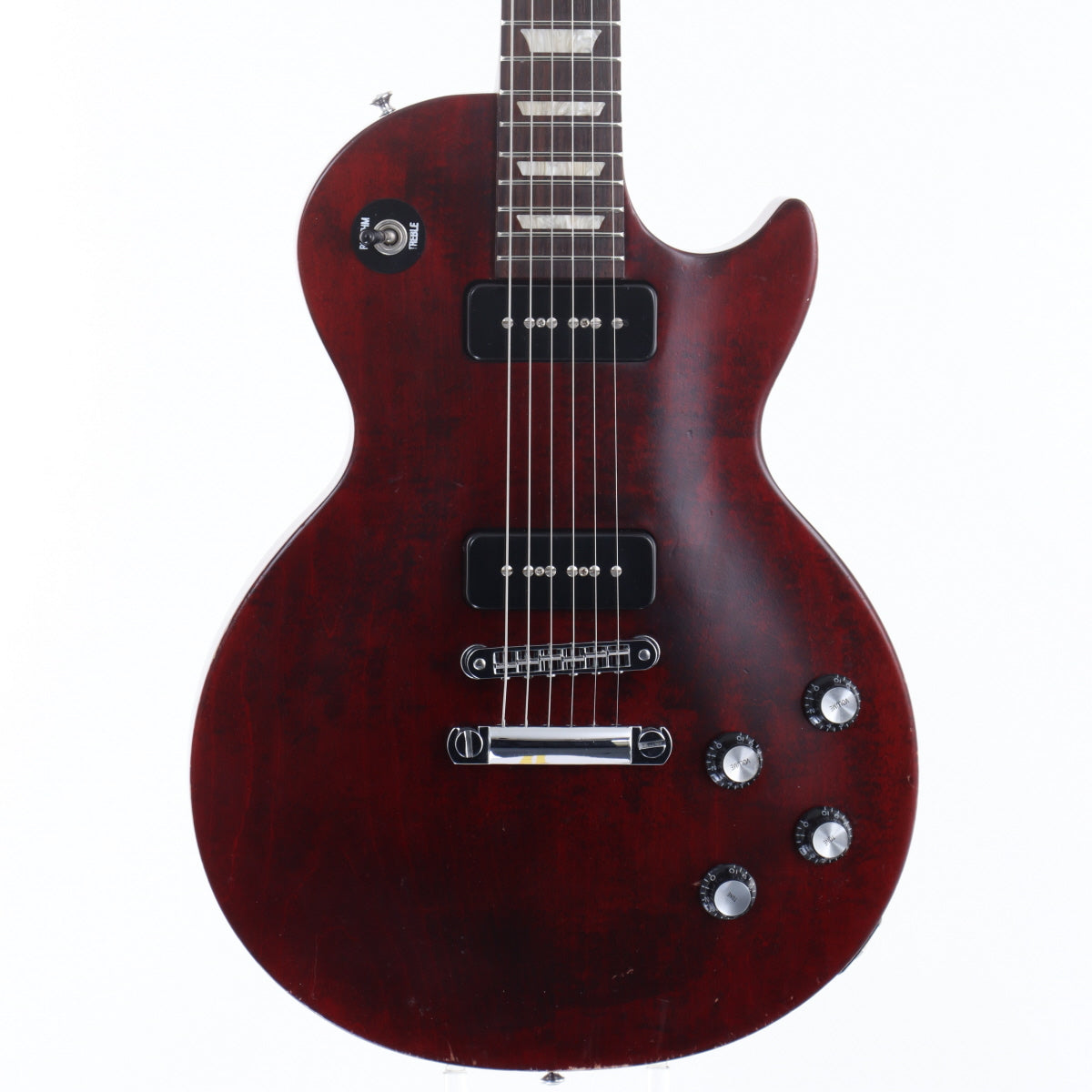 It has a simple look reminiscent of the Les Paul Studio, and is equipped with two P-90 pickups, which are well-loved by many for their thick single-coil sound.