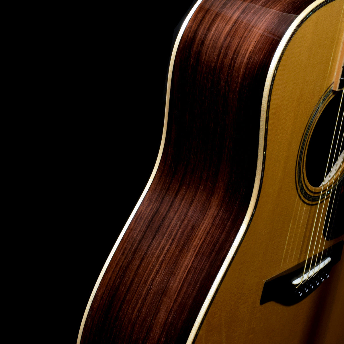 The original jumbo body and all solid specs are made of Ingleman spruce for the top and rosewood for the side and back.