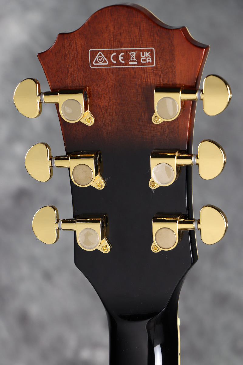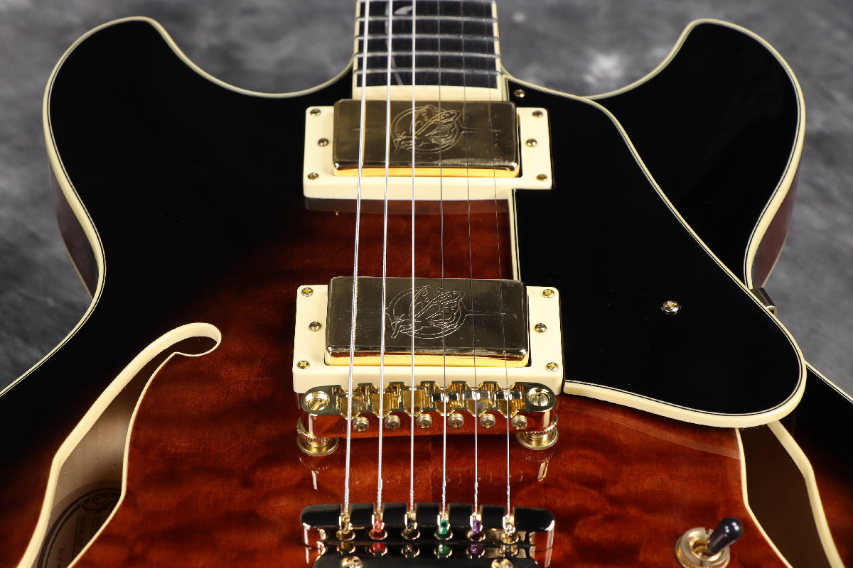 ★ヘッドまで伸びる Tree of Life 指板インレイを初め、随所にクラシック要素を散りばめた、キルトメイプル・ボディのセミアコ
