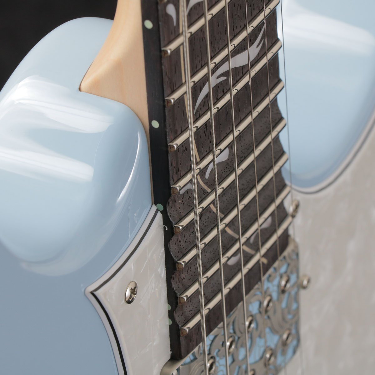 - Fretboard Rosewood fretboard w/PIA Blossom inlay & Luminlay side dots inlay