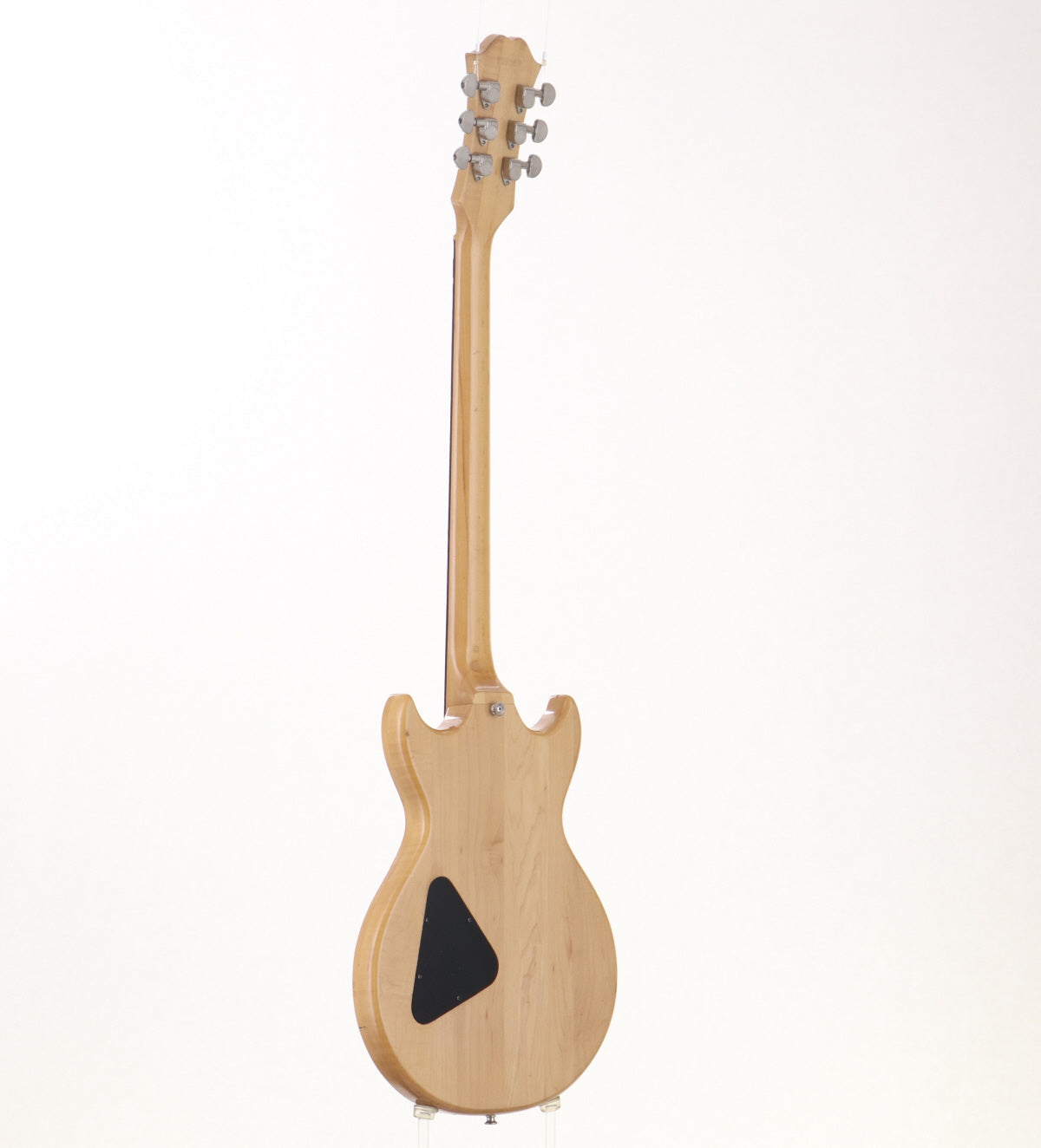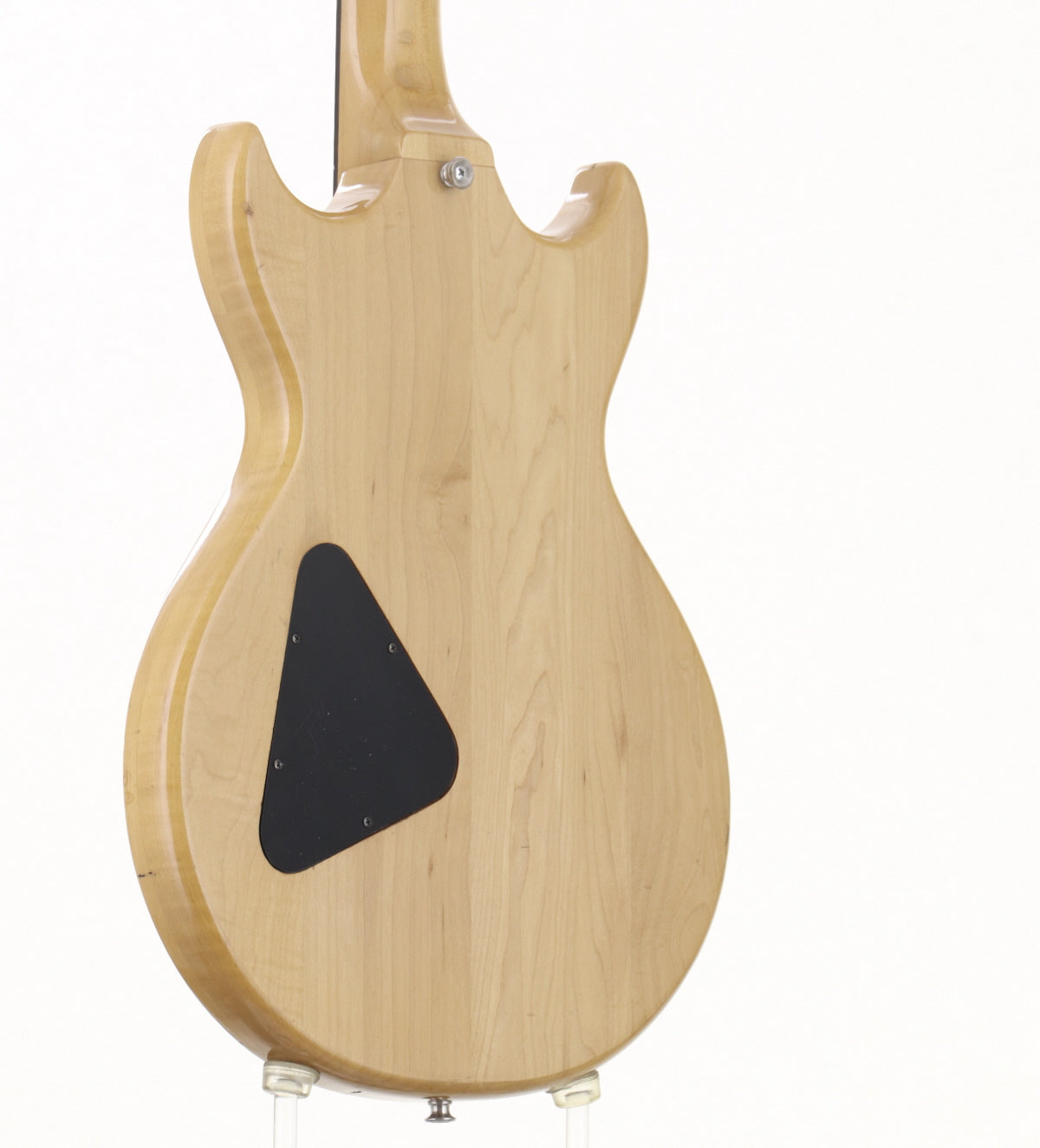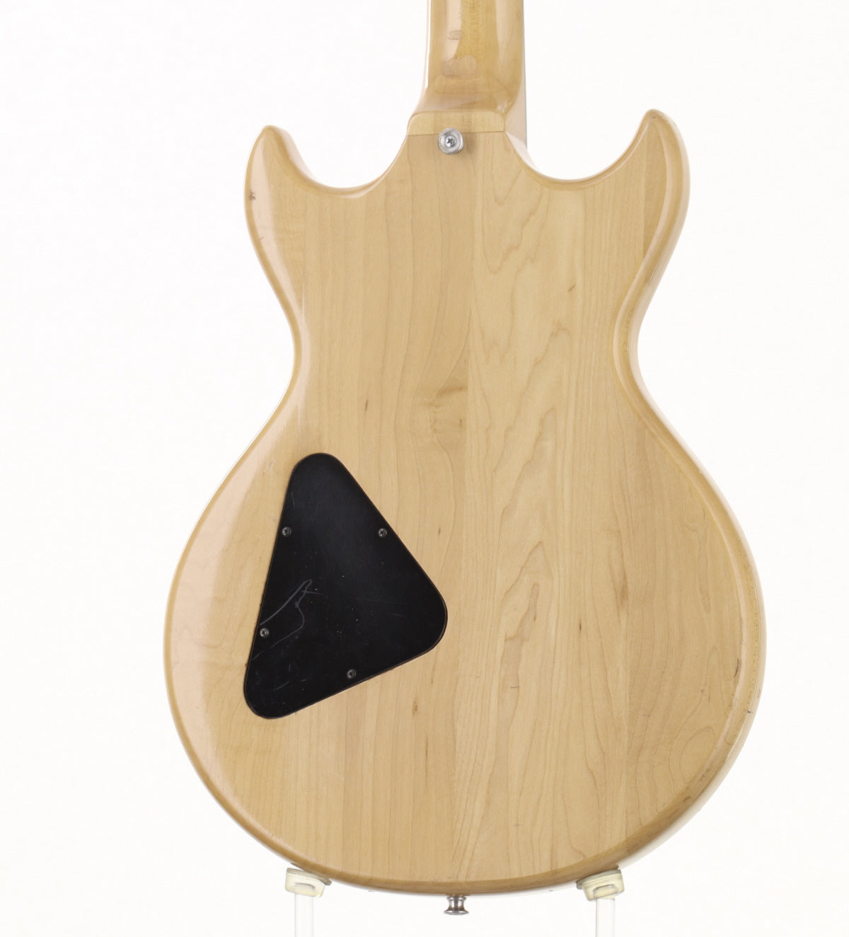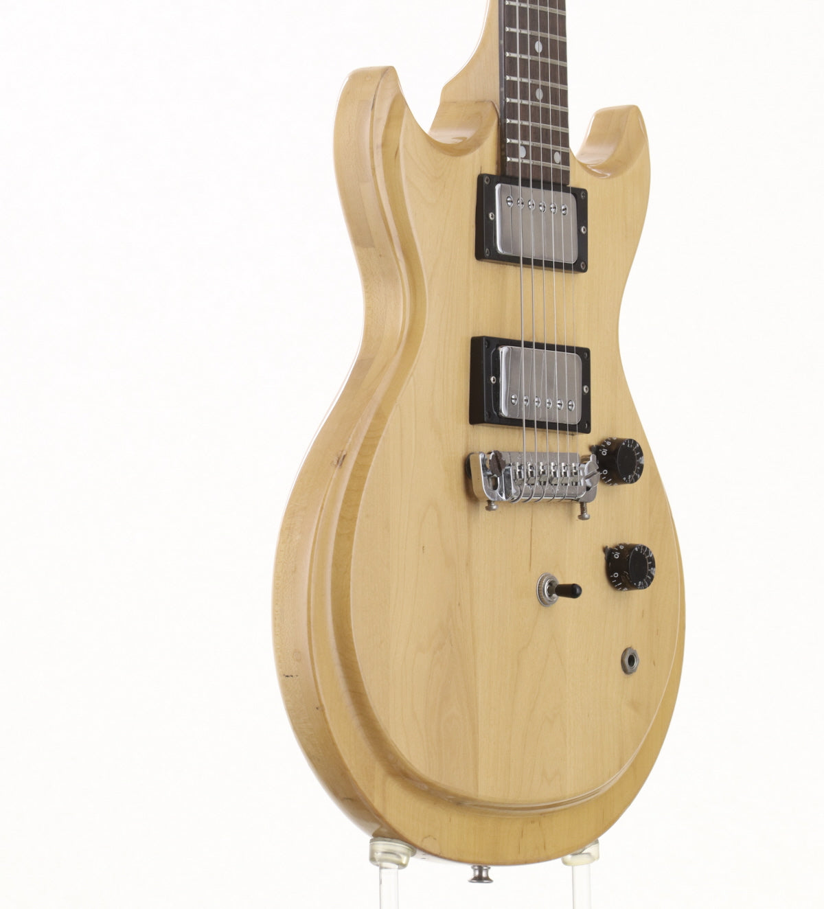 ボディ材はメイプル、メイプルネックのセットネックでローズウッドフィンガーボードを採用、オリジナルハムバッカー2基搭載、フロントエスカッションが交換されております。