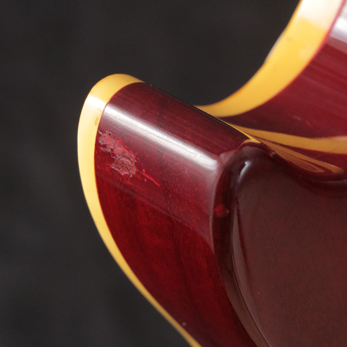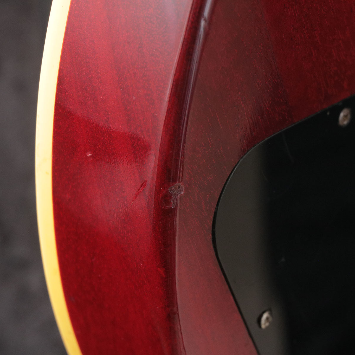 ボディに打痕や傷、バックル痕、ジャックプレートのビス交換、パーツ類くすみ、ピックアップカバーやテールピースに傷含め使用感がございます。