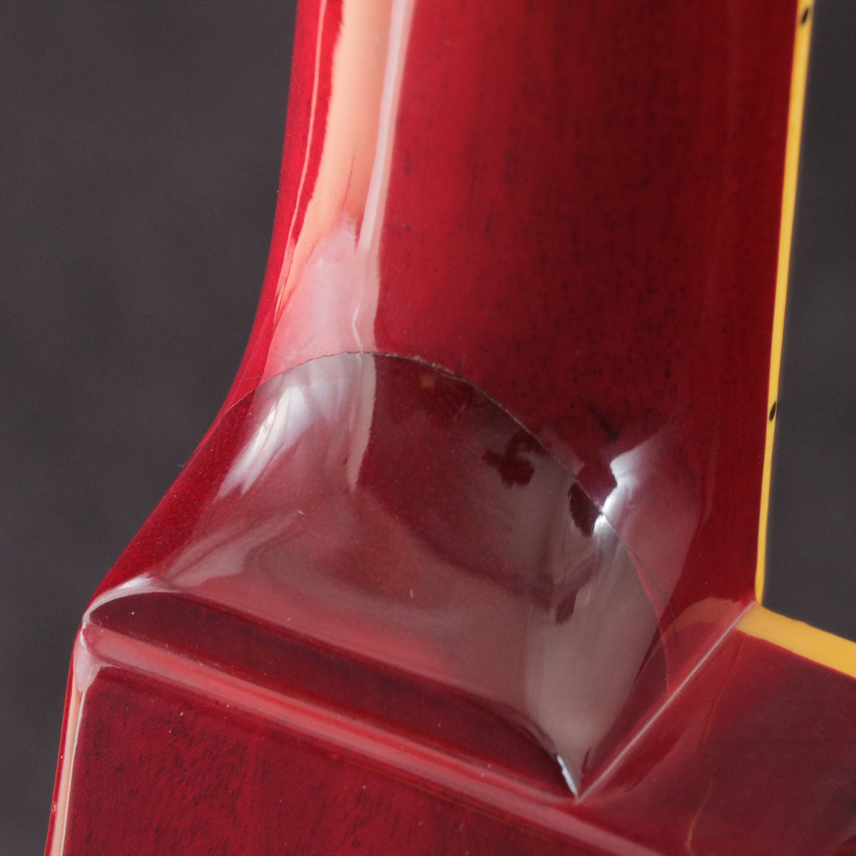 ネック裏のヒール部分に修正跡のような塗装クラックやひび割れの段差がございます。