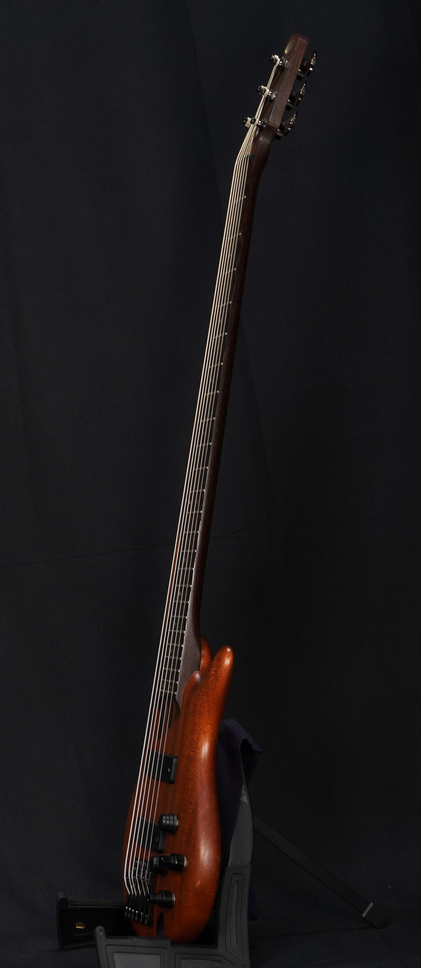 Thin mahogany body with original shape, 5-piece wenge and bubinga neck and wenge fingerboard.