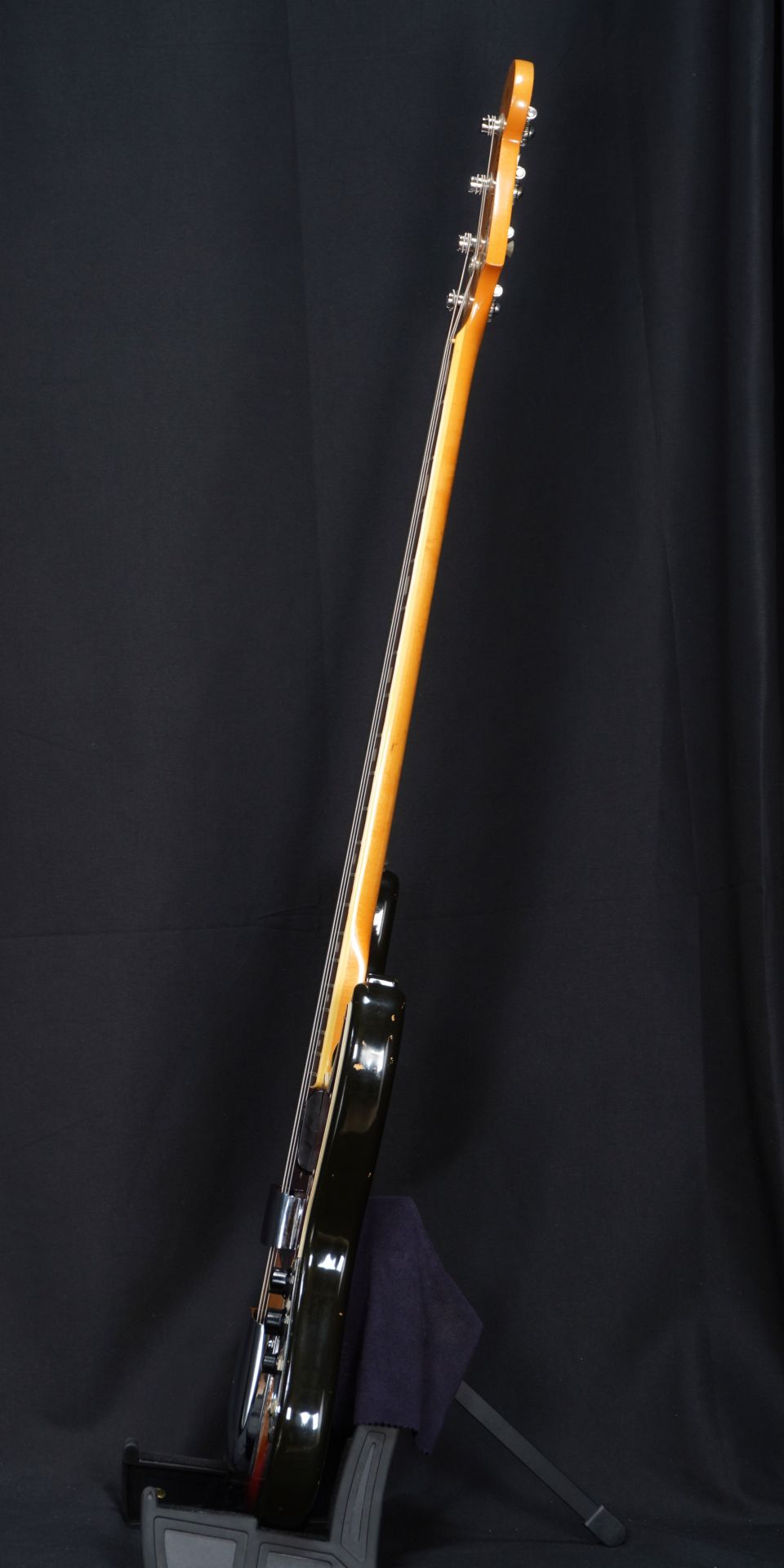 1966年以降の仕様を引き継いだ、ラウンド貼りのバウンドネックにはパーロイドブロックポジションマークが施されており、ボディの1弦側カッタウェイにはコブがまだ残っております。
