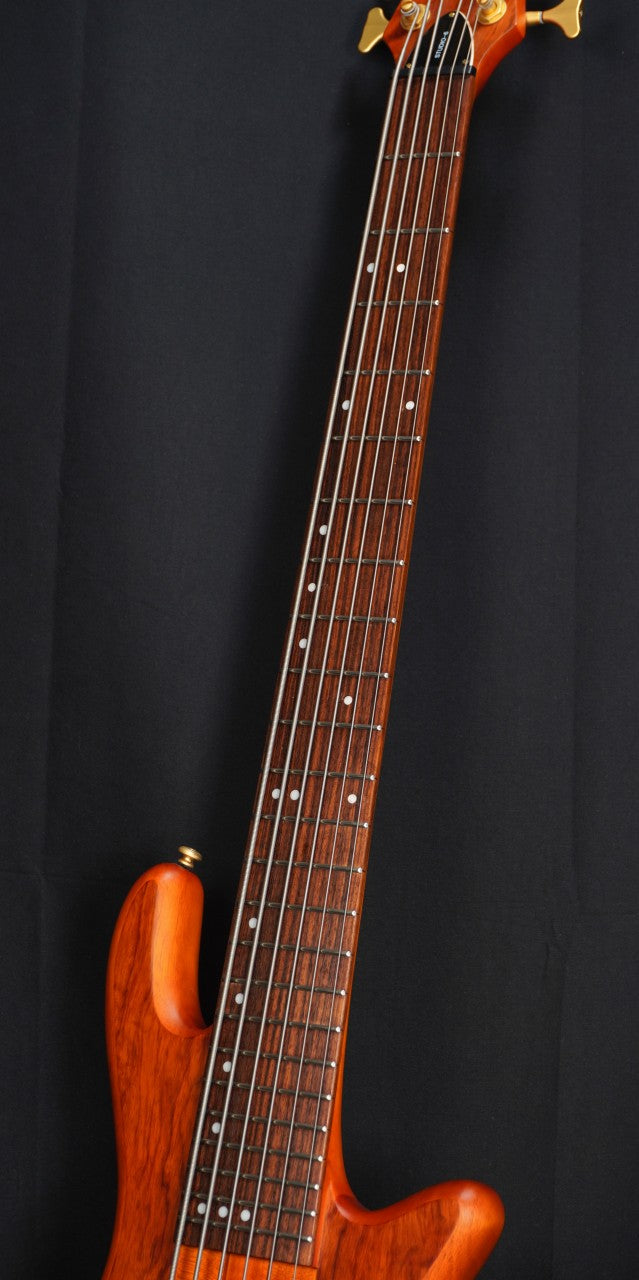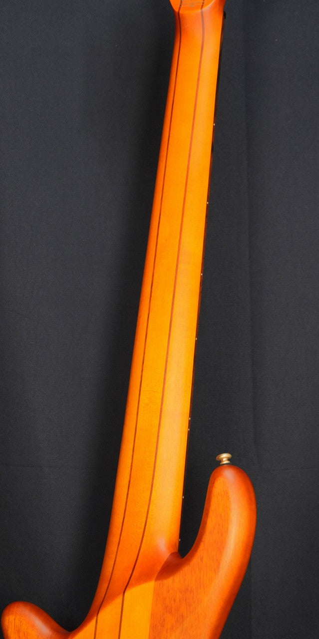 Through neck with 5-piece maple and walnut construction and rose fingerboard.