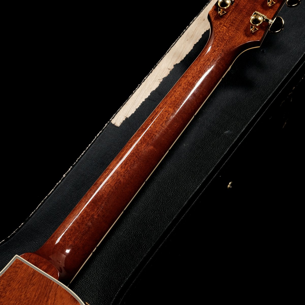贅沢にも目の美しいコア材をトップに使用し、サイドバックは上質なマホガニー材。指板は黒々としたエボニー。