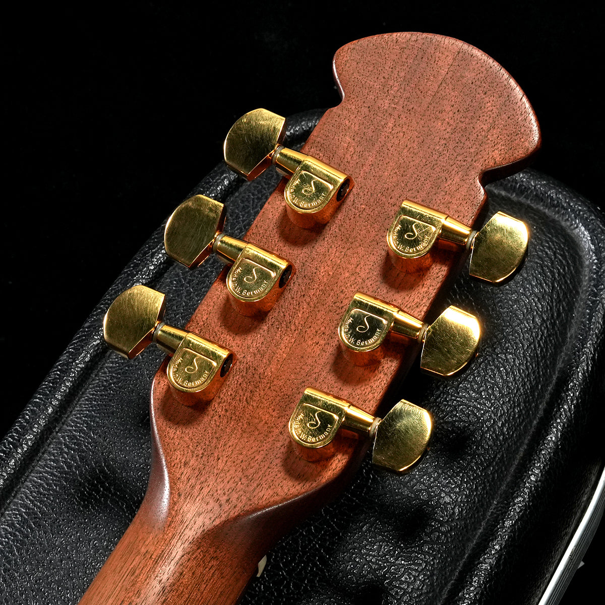 シャーラーペグ、Walnutウッド指板。オリジナルファンブレイシング、ダブルエポレットサウンドホール。搭載されているプリアンプは「OP24」です。