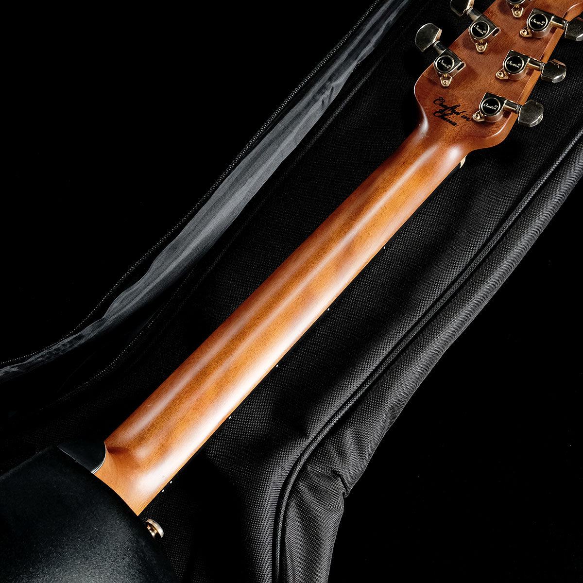 ボディトップには鮮やかで温かみのあるスポルテッドメイプルを使用。ミッドデプスボウルのボディ、ナット幅約43mm、641mmスケール、ネックはナトー材を使用し、指板&ブリッジにはオヴァンコール材が使われております。