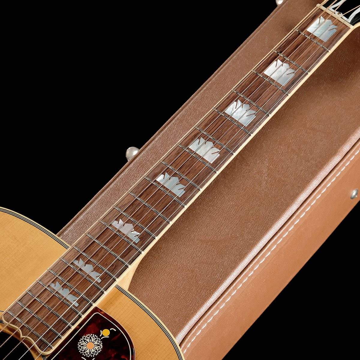 The mustache-like mustache bridge design, gorgeous pickguard, mother-of-pearl Gibson logo, crown head inlay, crown position mark inlay, and other gorgeous decorations give this guitar a presence that lives up to its name of "King.