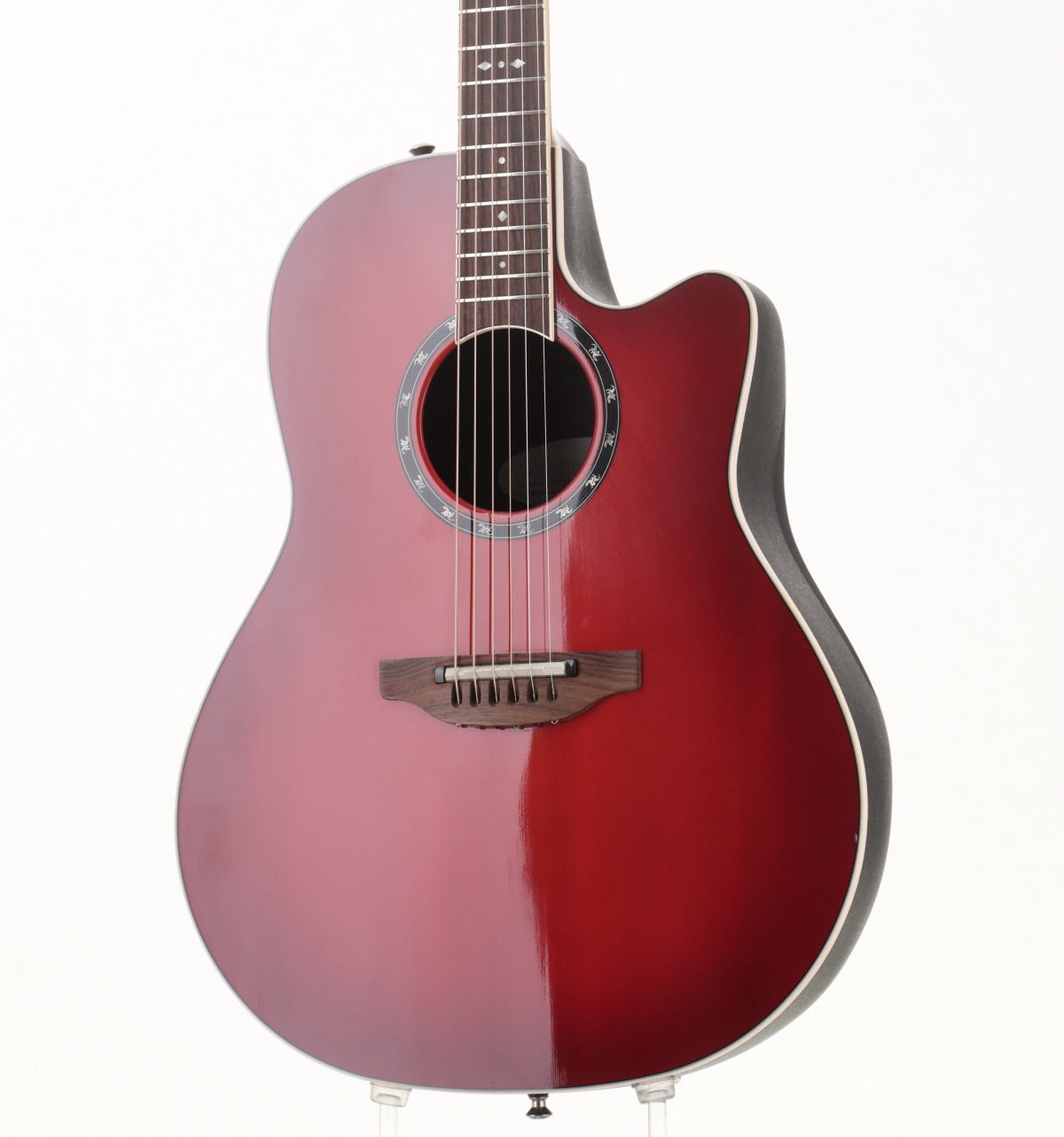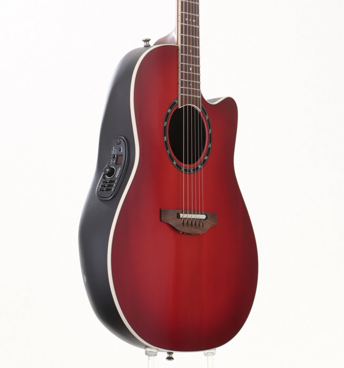 Aグレード・シトカスプルース・トップ、5Pマホガニー/メイプル・ネック、ローズ指板&ブリッジ、チューナー内蔵のOP-Proプリアンプを搭載し、Ovationロゴ入りペグを搭載しています。