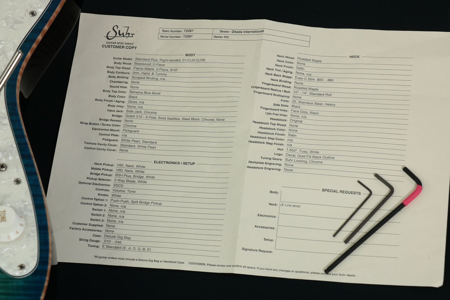 [SN 72397] USED Suhr / JST Standard Plus Bahama Blue Burst/Roasted Maple [3.30kg] Sir Electric Guitar [08]