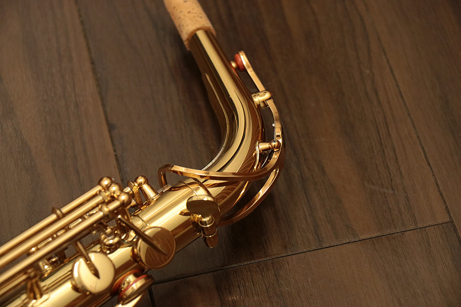 The Student Class YAS-34II was manufactured until around 2002, and is the equivalent of the YAS-475 and YAS-380 models manufactured in later years. The stainless steel spring gives the saxophone a soft touch, and the lightweight body makes it easy to play. Equipped with the key mechanism necessary for a modern saxophone, this instrument is fully functional for beginners. Overall, there are some scratches from use and rust from key parts, but there is no major damage. The entire instrument has been adjusted including replacement of all tampos.