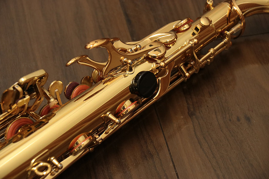 2002年頃まで製造されていたスチューデントクラスのYAS-34II。後年に製造されたYAS-475、YAS-380に相当するモデル。ステンレスバネの柔らかなタッチ感、軽量な管体による鳴らしやすさ。現代サックスとして必要なキィメカニズムを装備しており、初心者が扱う楽器として十分な機能を備えた楽器です。全体的に使用キズ、キィパーツなどからサビの発生が見られますが大きなダメージはございません。全タンポ交換を含む全体調整済み。