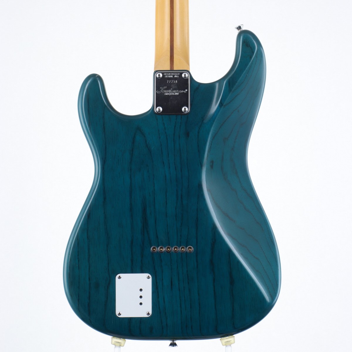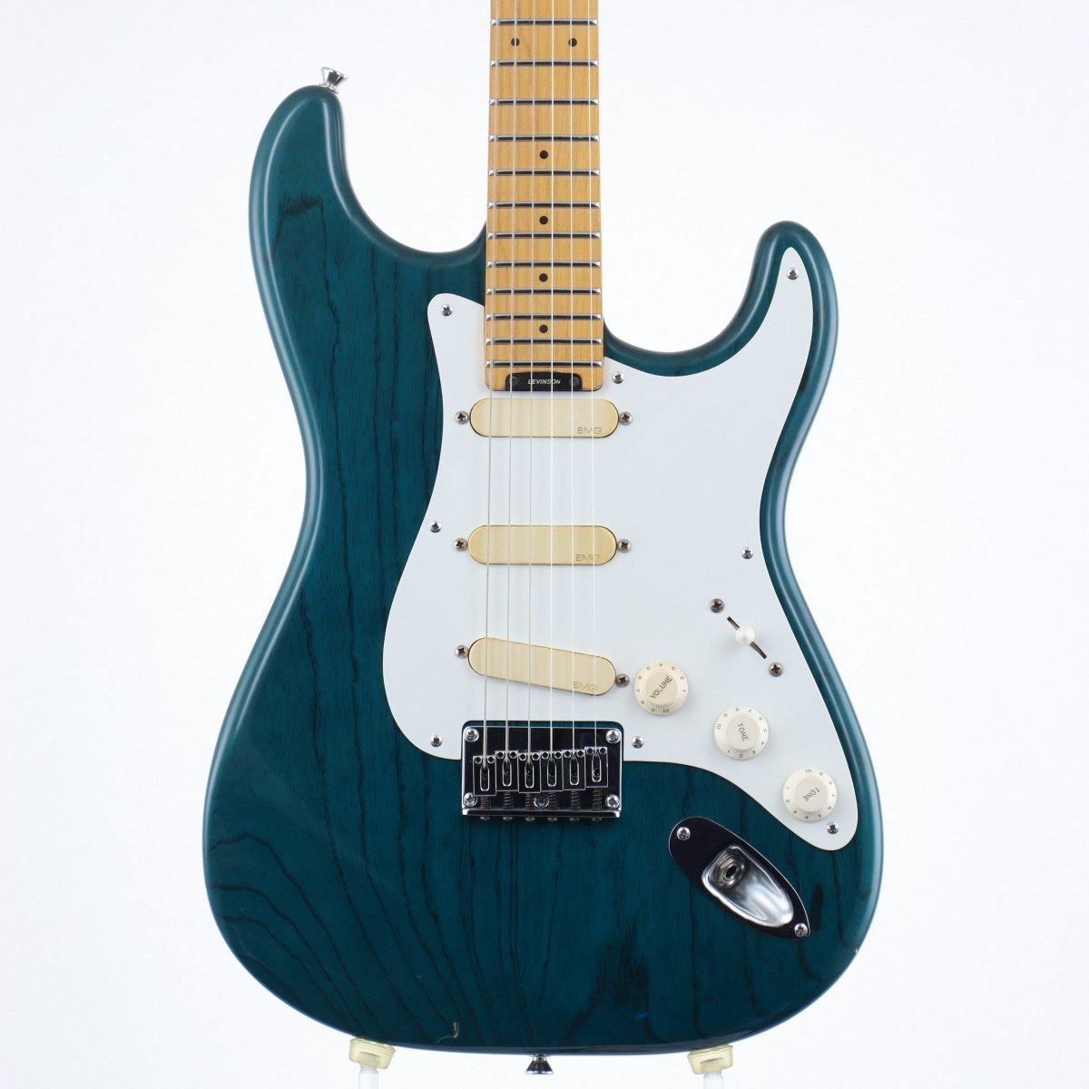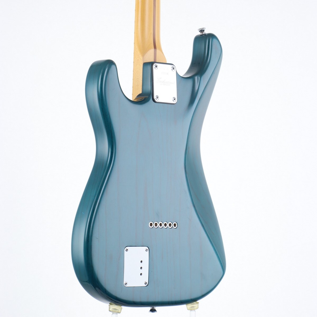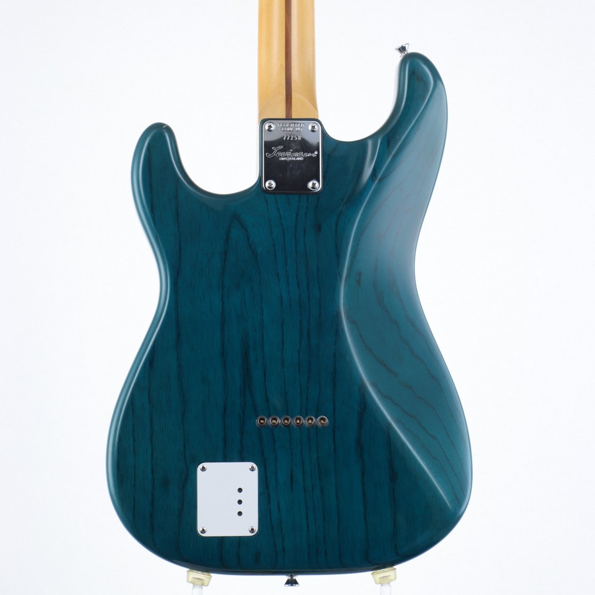 Burnished ash body with a bluish dark green finish that is not supposed to be found on the regular line. Maple neck. EMG IB pickups, 6-way saddle hardtail bridge, and Sperzel locking pegs. The rear tone section has a unique 3-point control, with a booster mode on the right, a flat mode in the middle, and a mini-EQ mode on the left, which is located on the back of the body.