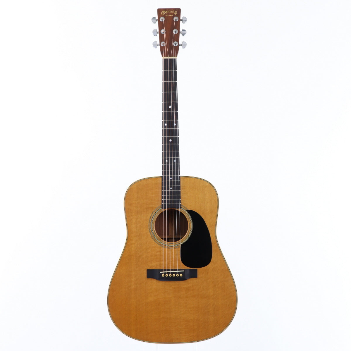 The Martin D-28 is loved by many guitarists as a symbol of the dreadnought guitar. The rich bass and clear mids and highs produced by the Sitka spruce top and Indian rosewood sides and back are appealing. Scalloped X bracing provides a light and responsive playing feel.
