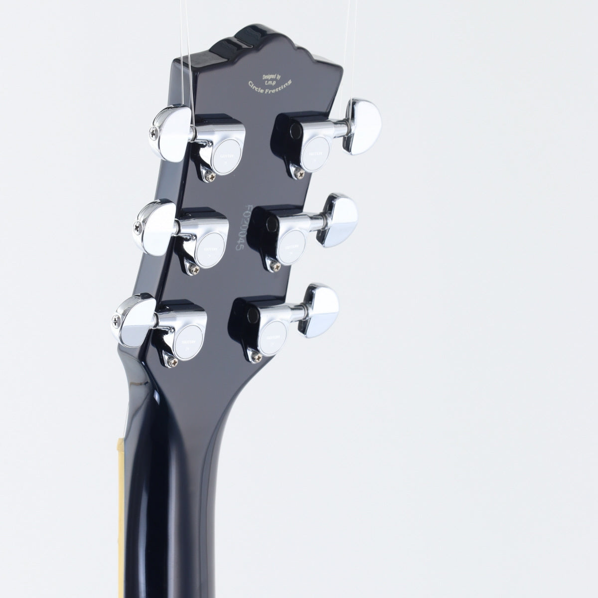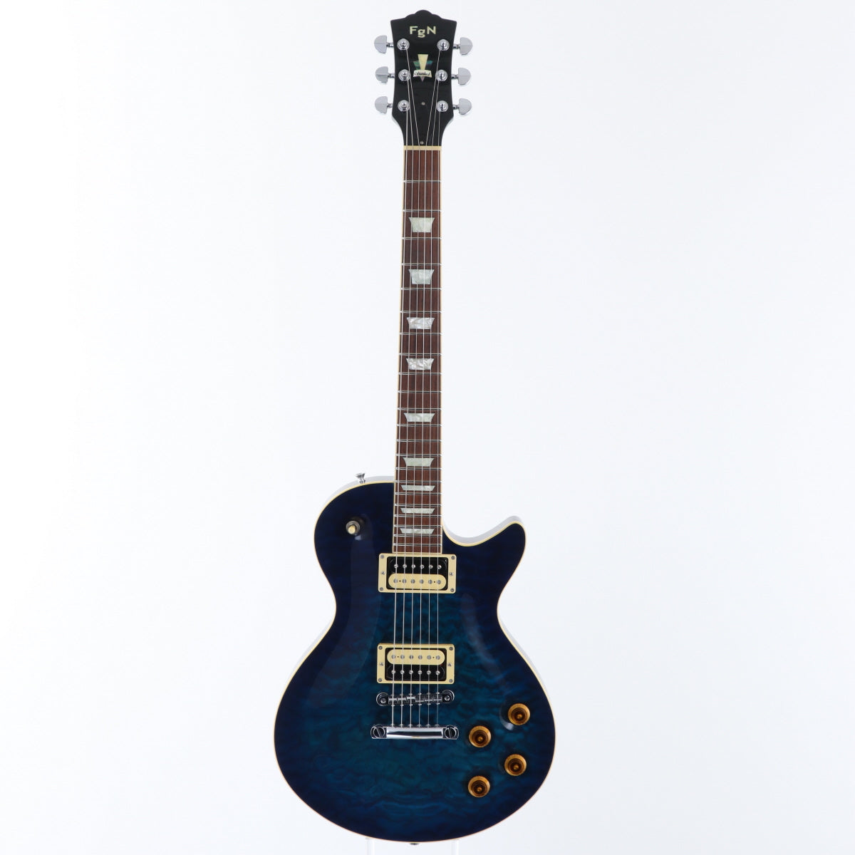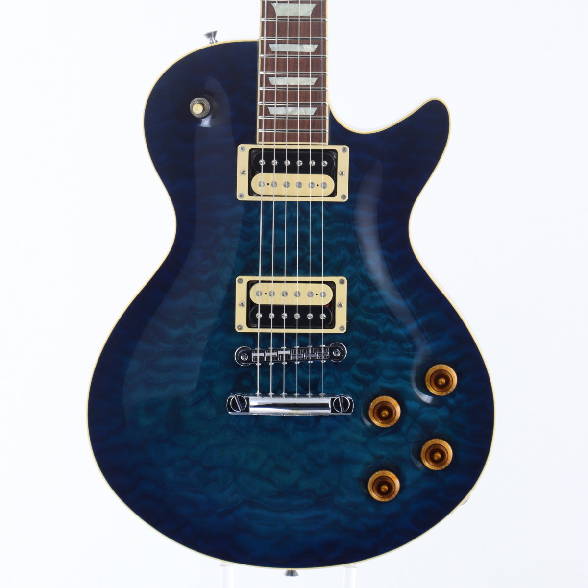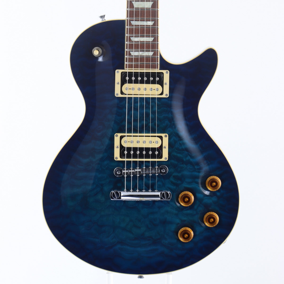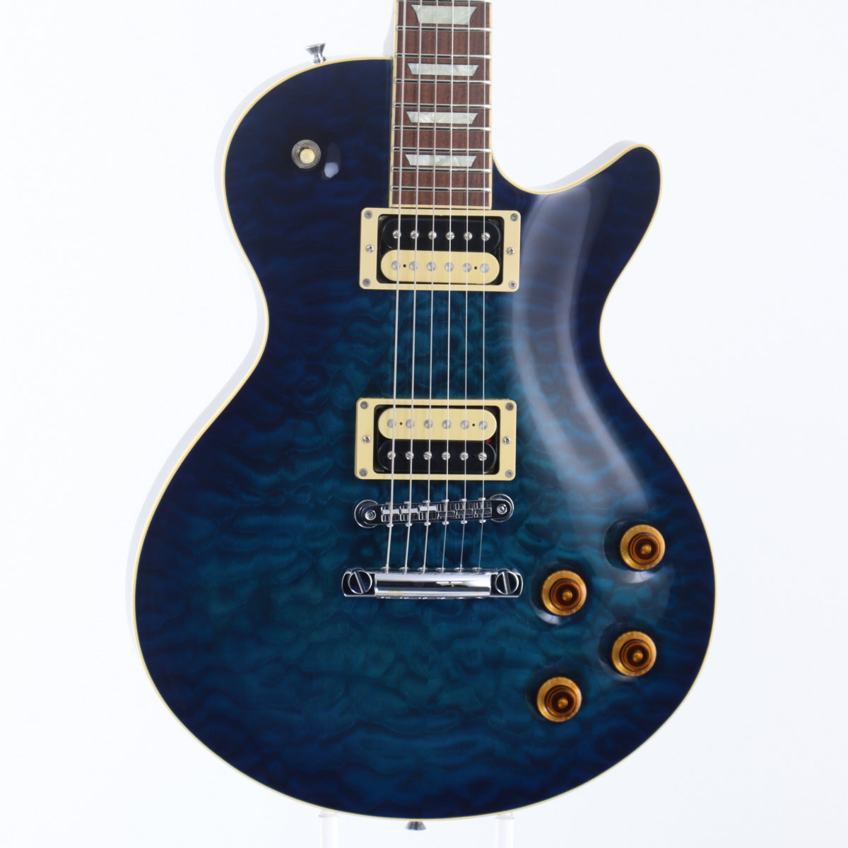 トップには深みのあるブルーでフィニッシュされたキルトメイプルが採用。ボディバックにはマホガニーが使用されています。バックやネックも深い青でフィニッシュされており、クールな印象。