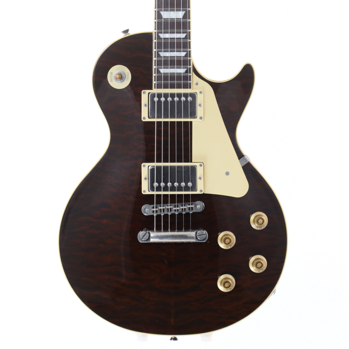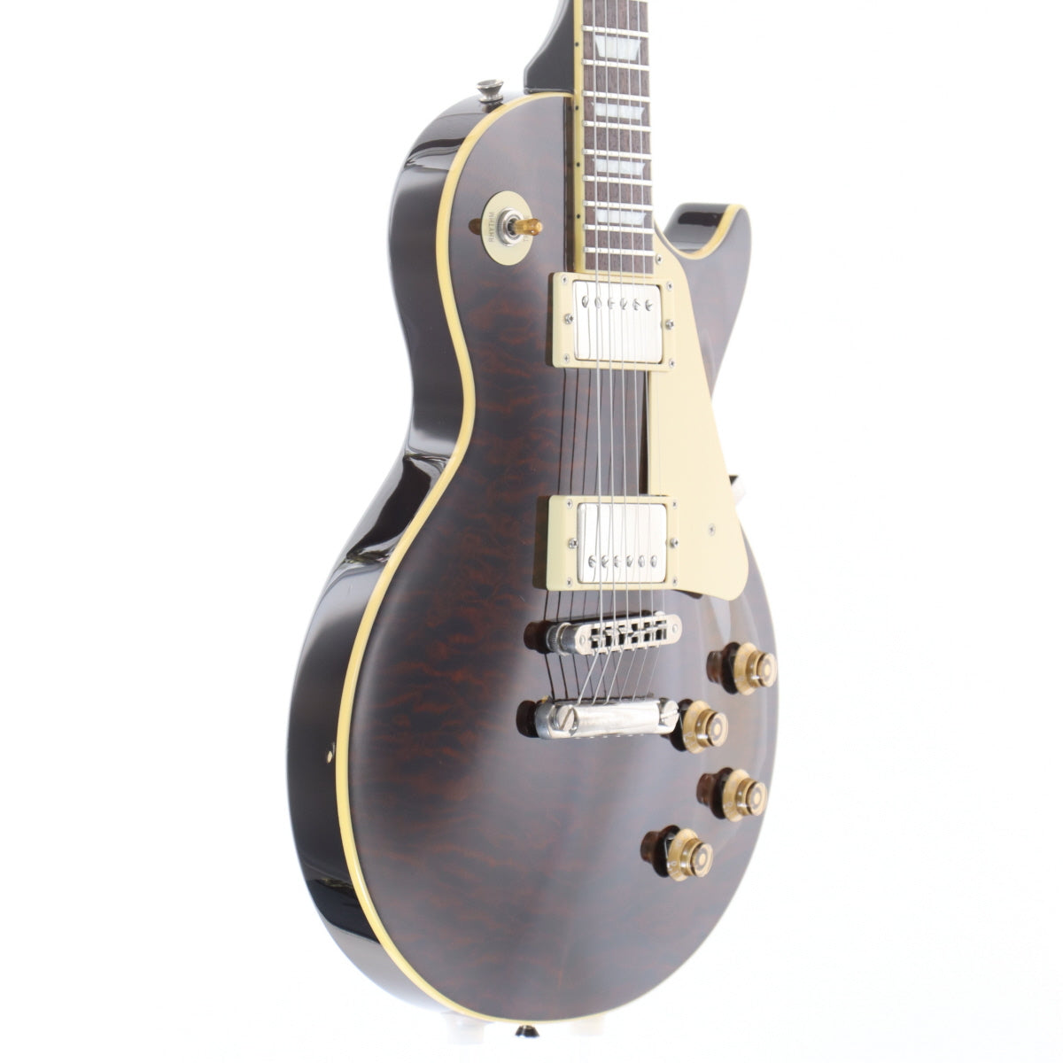 バスウッドを使用した薄型のボディに美しいキルトメイプルトップを施したレスポールタイプギターです。スリムなネックグリップによりハイポジションでも快適な演奏性を実現しており、長時間の演奏でも疲れにくい設計です。