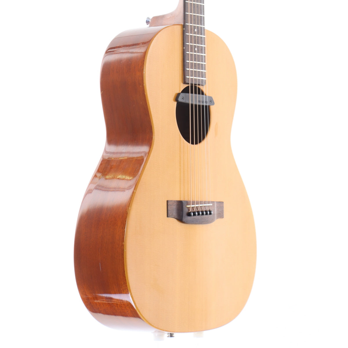 The K.Yairi NY-021H has a rich, warm sound produced by a solid spruce top and solid mahogany back and sides. 14-fret joint makes the compact body comfortable in the hand and allows for smooth chord changes and finger picking. The mahogany neck and rosewood fingerboard provide a smooth playing feel and comfortable resonance. This is a guitar that you will love every time you play it and that will be with you for a long time.