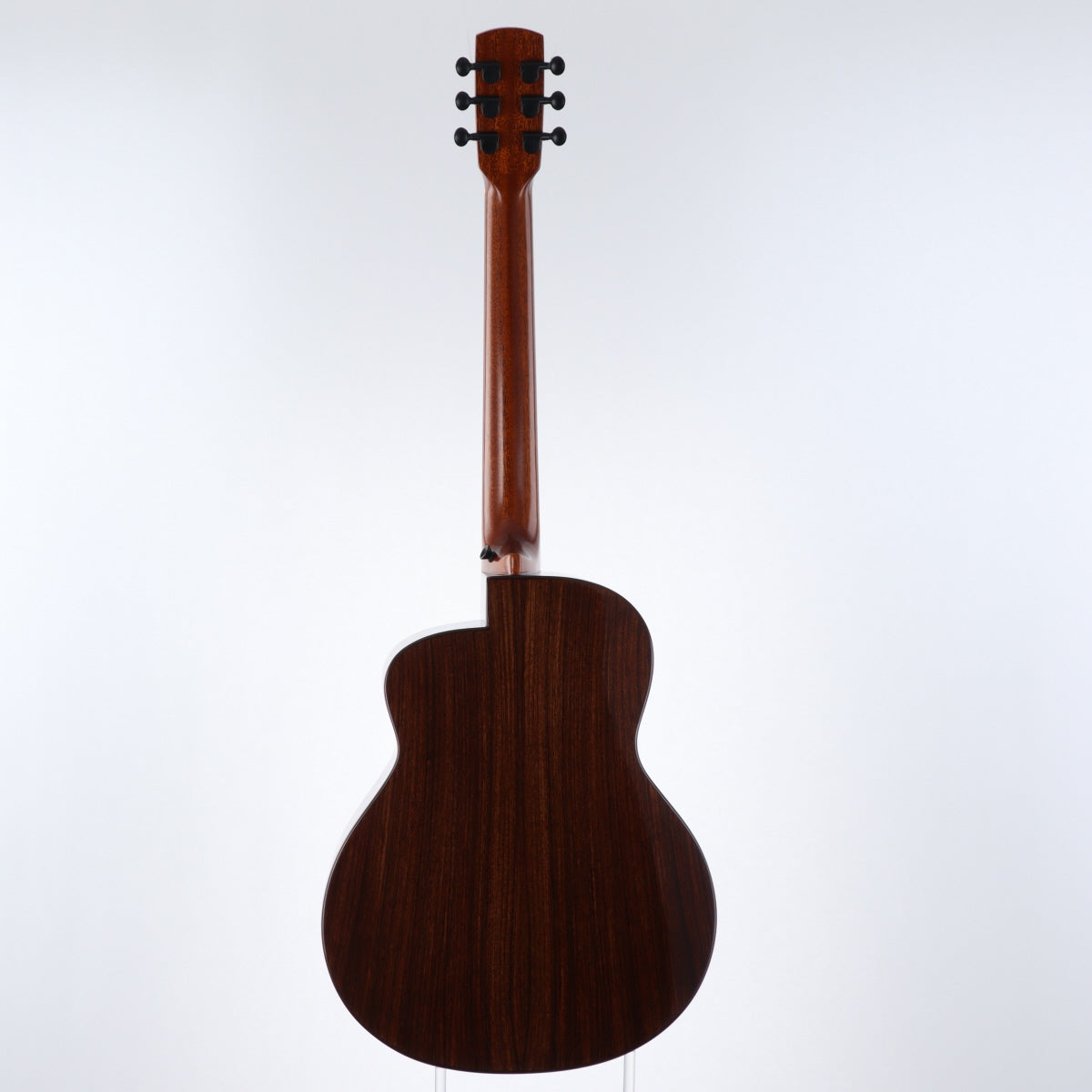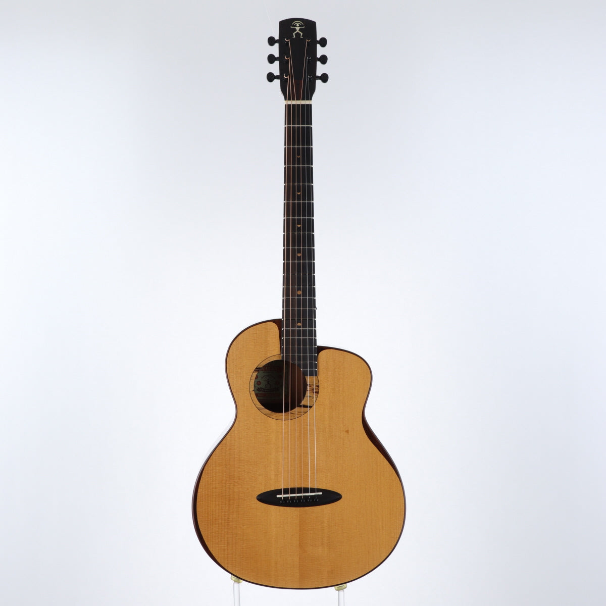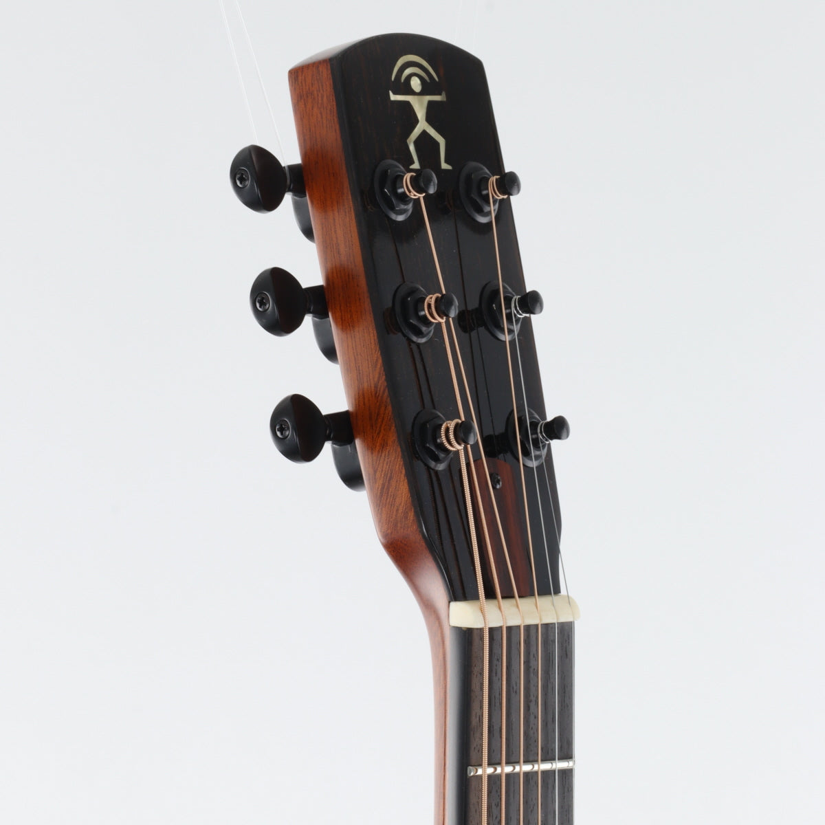スプルーストップにサイド&バックはローズウッド、総ソリッドのトラベルギターです。ボディサイズは控えめですが、610mmのスケールが非常に良い塩梅で、サウンドもチープでは無くしっかりと芯があります。家でスッと手に取れるギターです。
