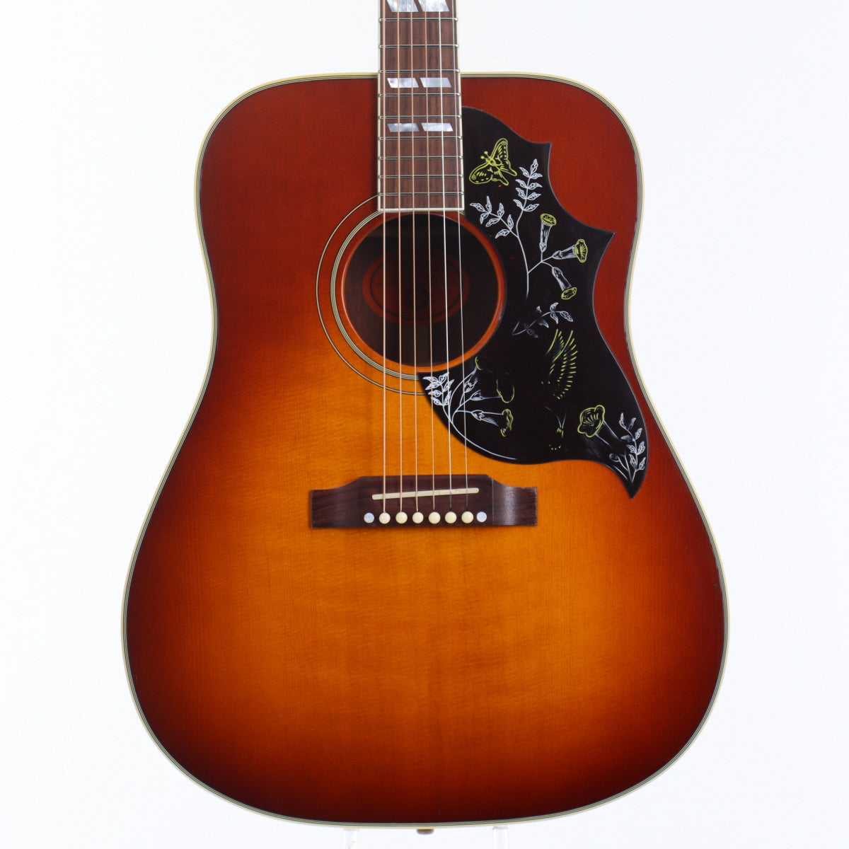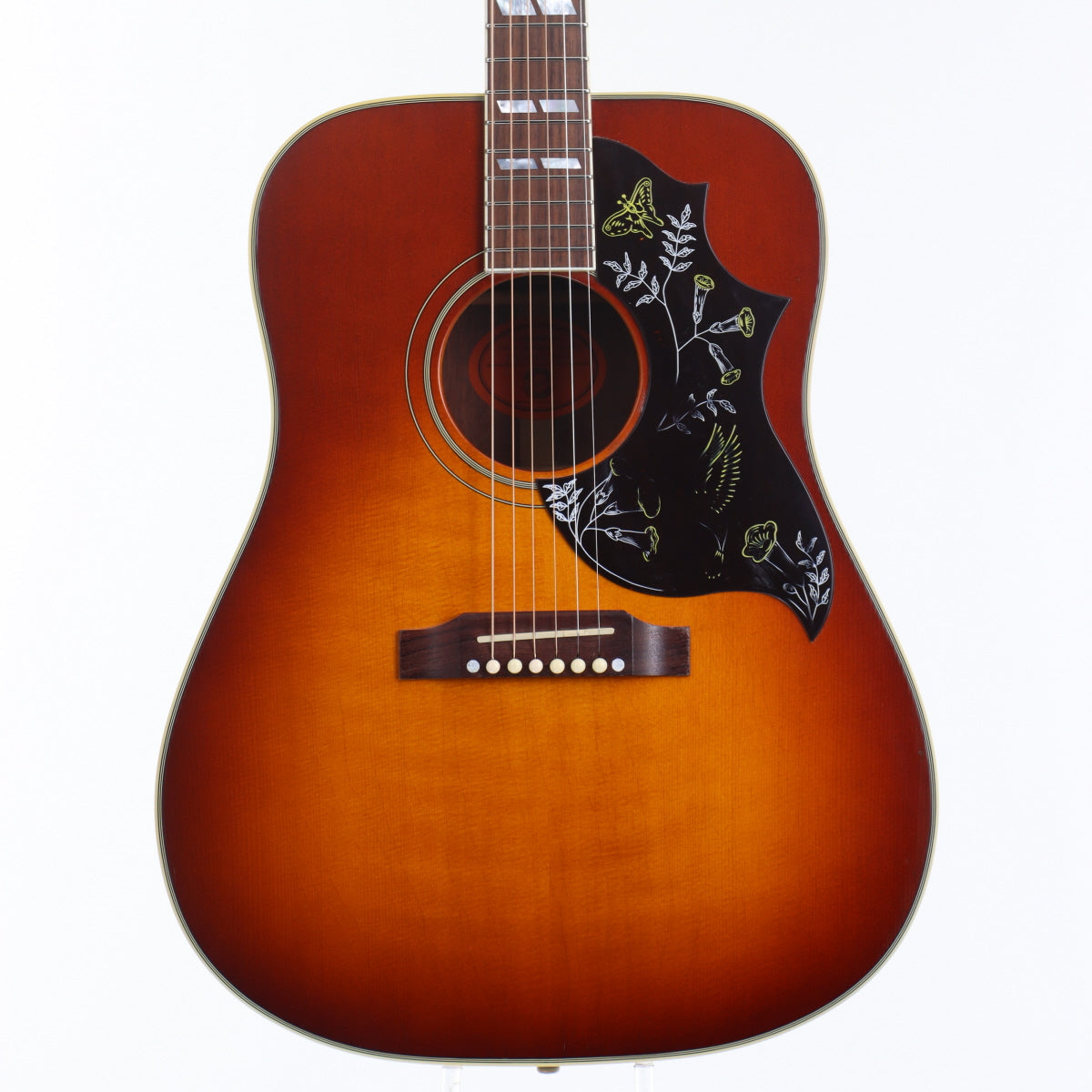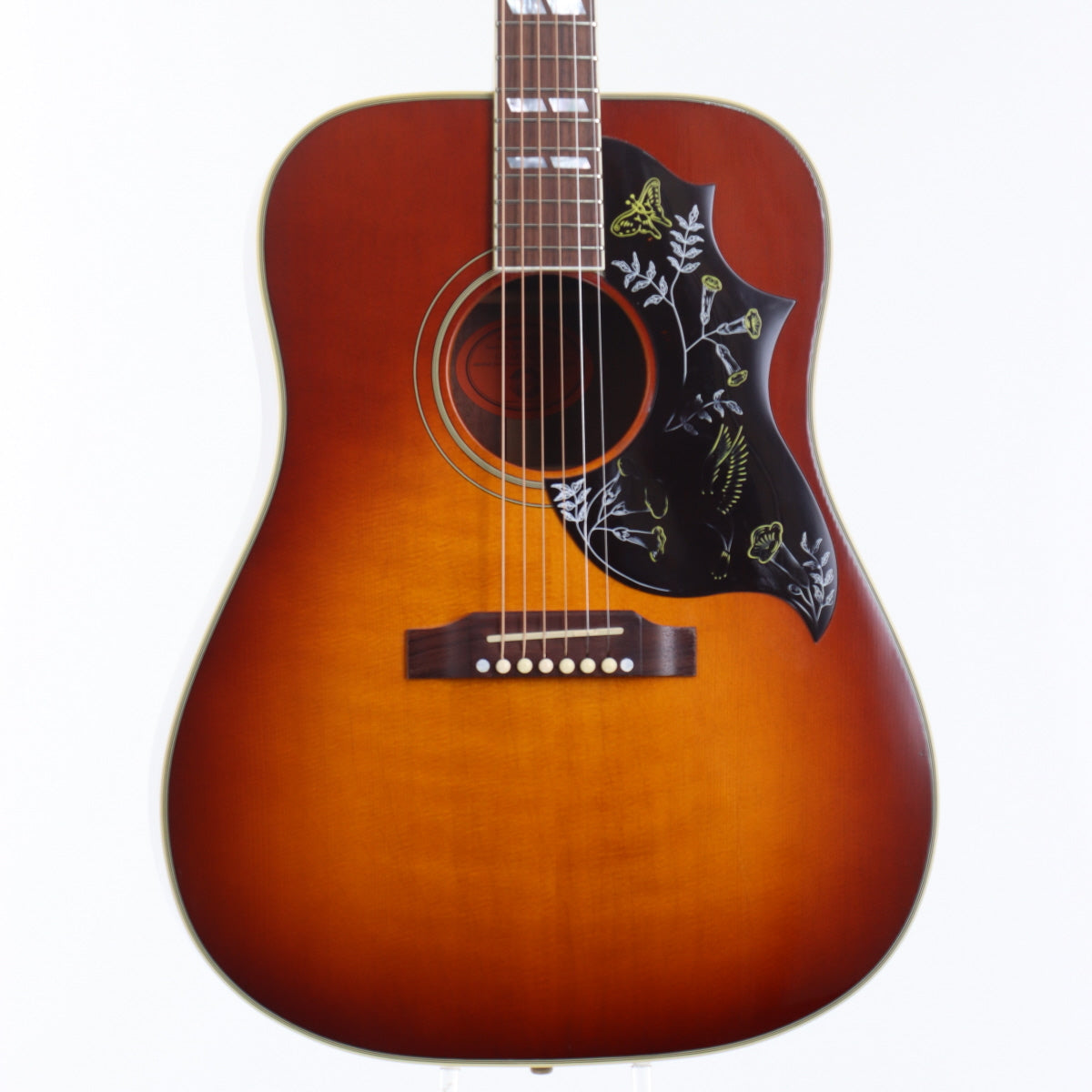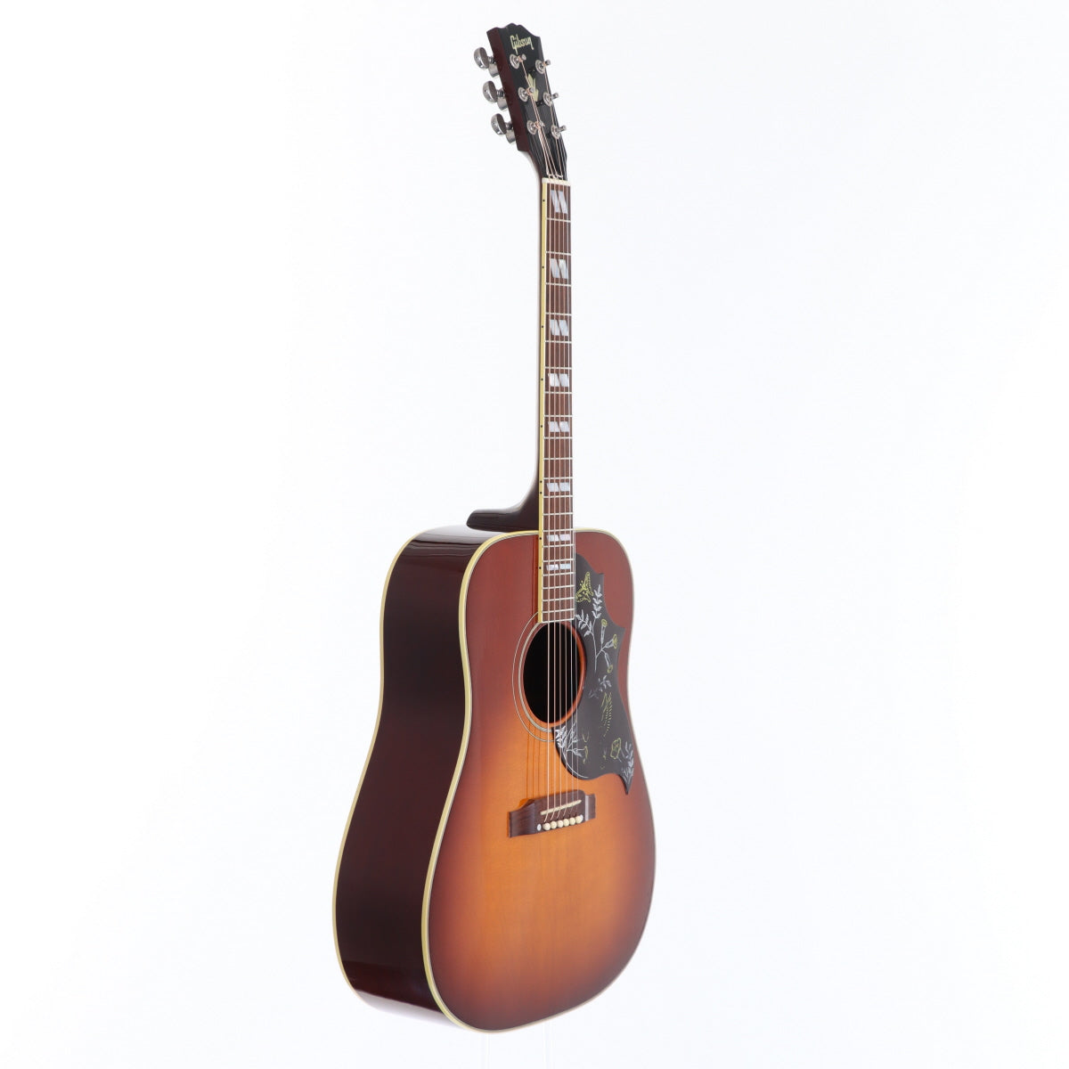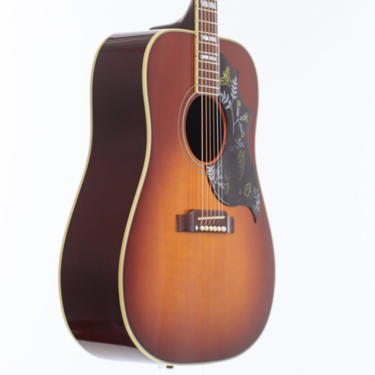 デザイン性を求めるなら真っ先に名前が上がるギターかと思います。エレキに比べアコギのデザインが限定的だった60年代初頭に発売され、瞬く間にアコースティックギターのトップに上り詰めました。程なく各社がコピー品を量産し、あのYAMAHAでさえも似せたデザインのギターを発売するなど、時代を先駆けた前衛的なデザインとして評価を集めました。本器は旧代理店時代の個体で、色焼けもあると思いますが、現行品よりも赤みが強い印象です。名前負けしないサウンドクオリティを保ち続けGibsonの顔とも言える地位を確立した歴史あるロックなギターです。
