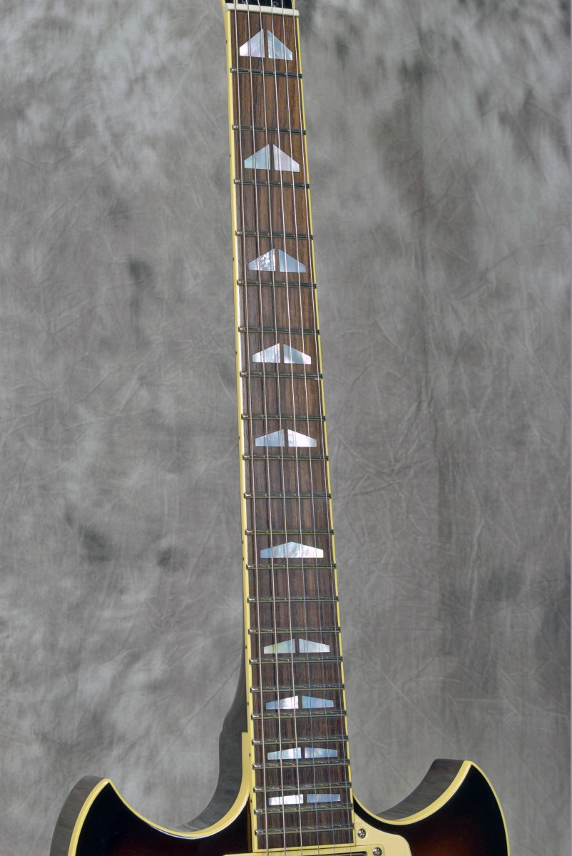 As many of the SGs built by the Custom Shop to order by professional guitarists use rosewood fingerboards, the new SG's fingerboard is made of carefully selected high-grade rosewood.