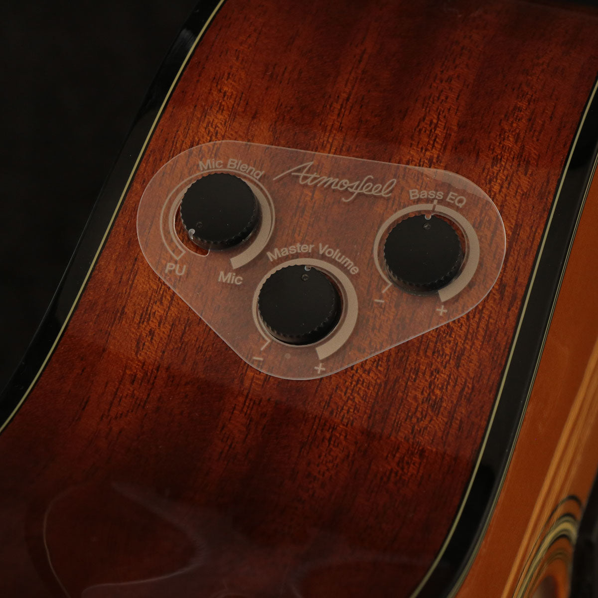 今回発売となった本機種は、ボディ全体がグロス仕上げに変更となり、より高級感漂う外観と煌びやかなサウンドとなりました。ピックアップ搭載モデルには、自然なアコースティックサウンドでご高評頂いている3Way PU System Atmosfeel(アトモスフィール)を採用し、ステージでの使用にも優れたパフォーマンスを発揮します。