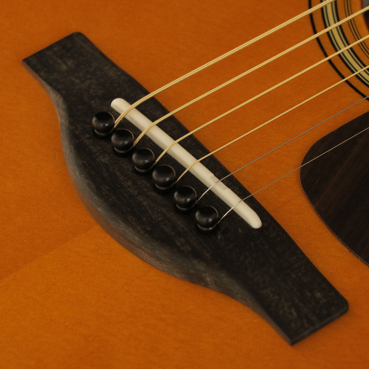 Yamaha's original folk body shape provides high playability for players who prefer a smaller body. The full, grainy sound is ideal for responsive chord strokes and fingerpicking.