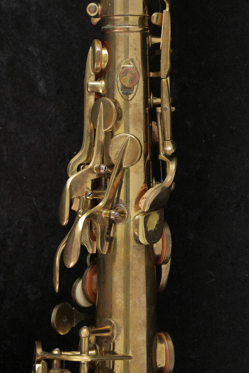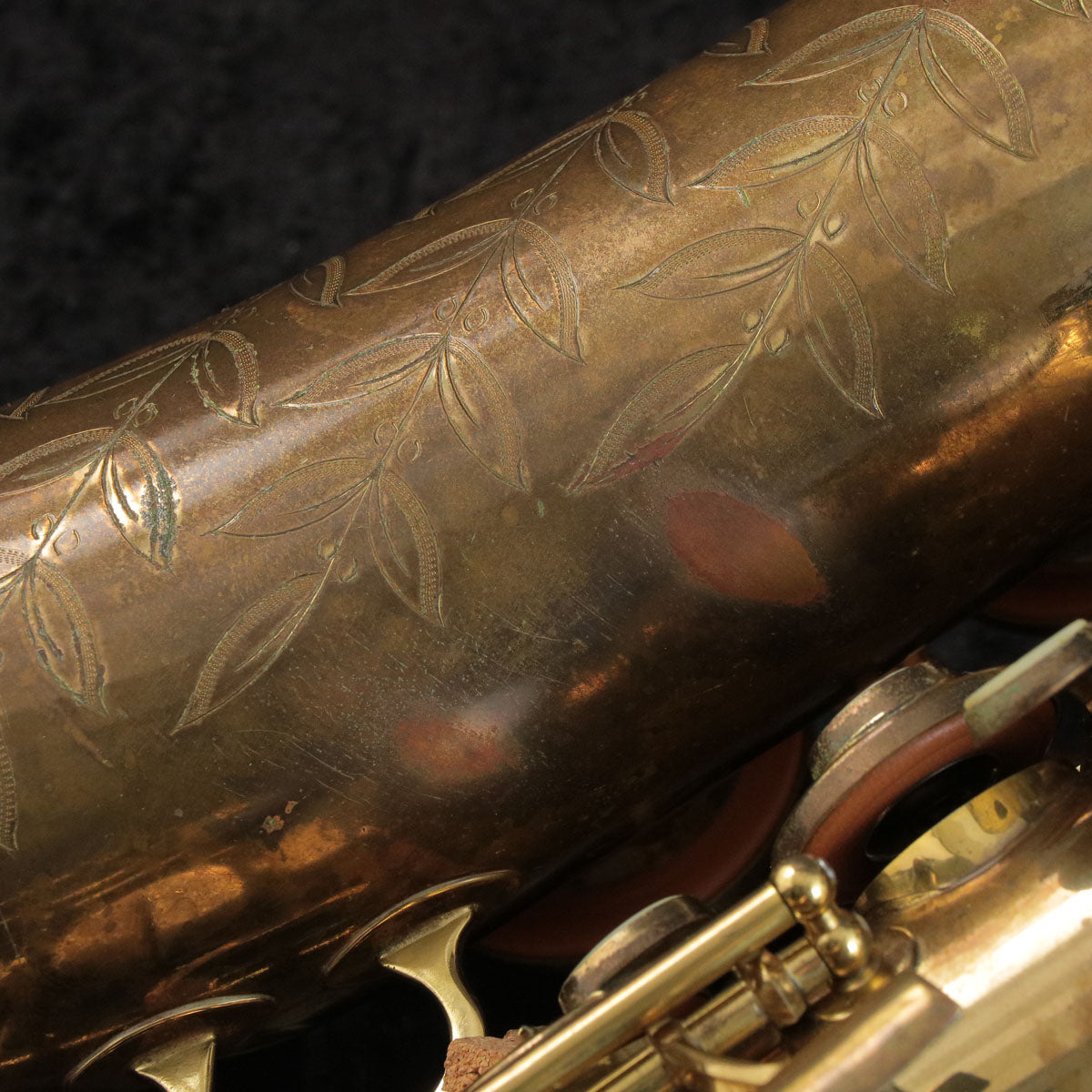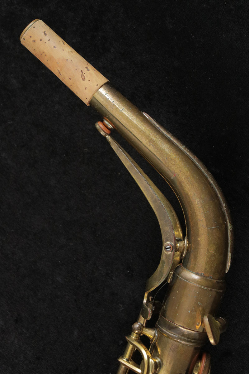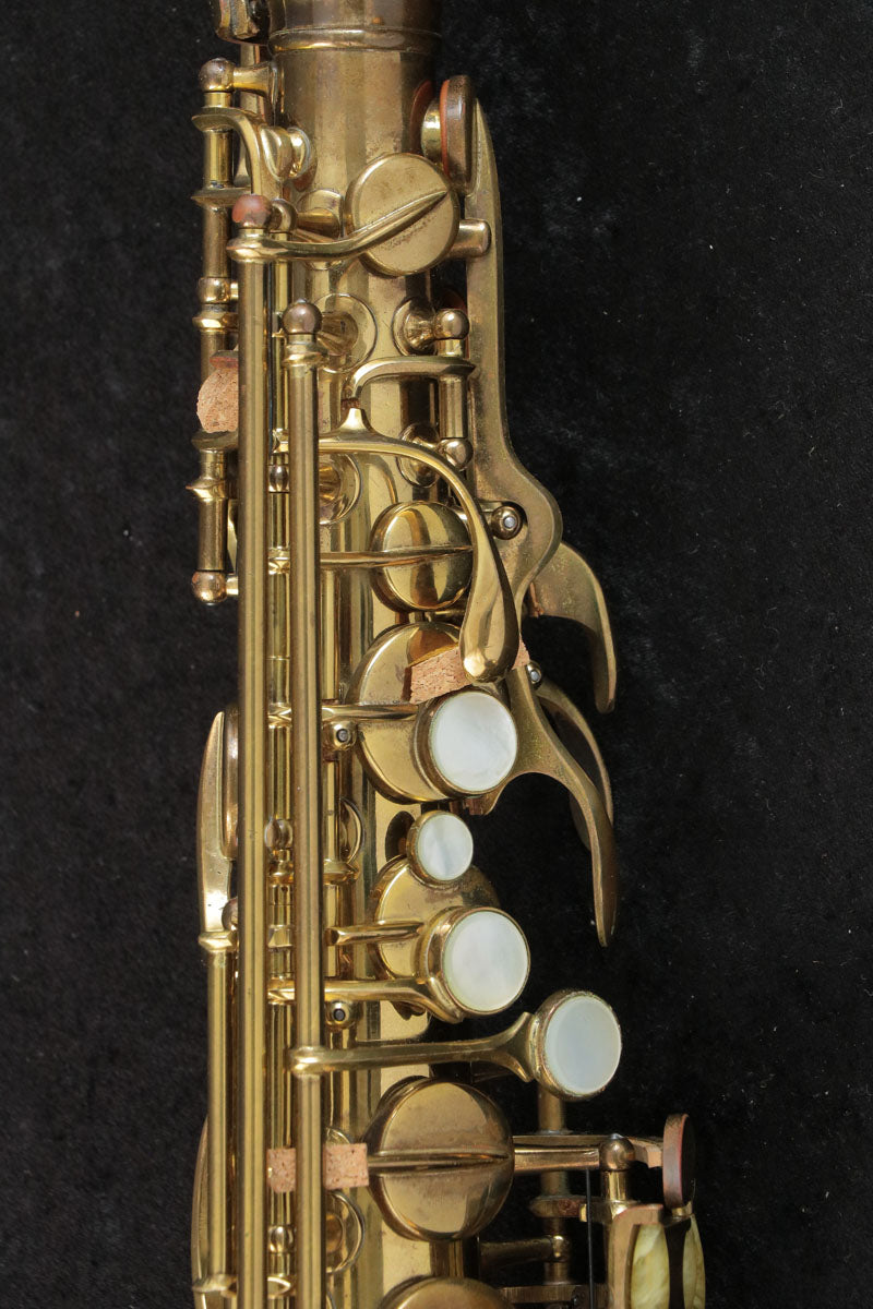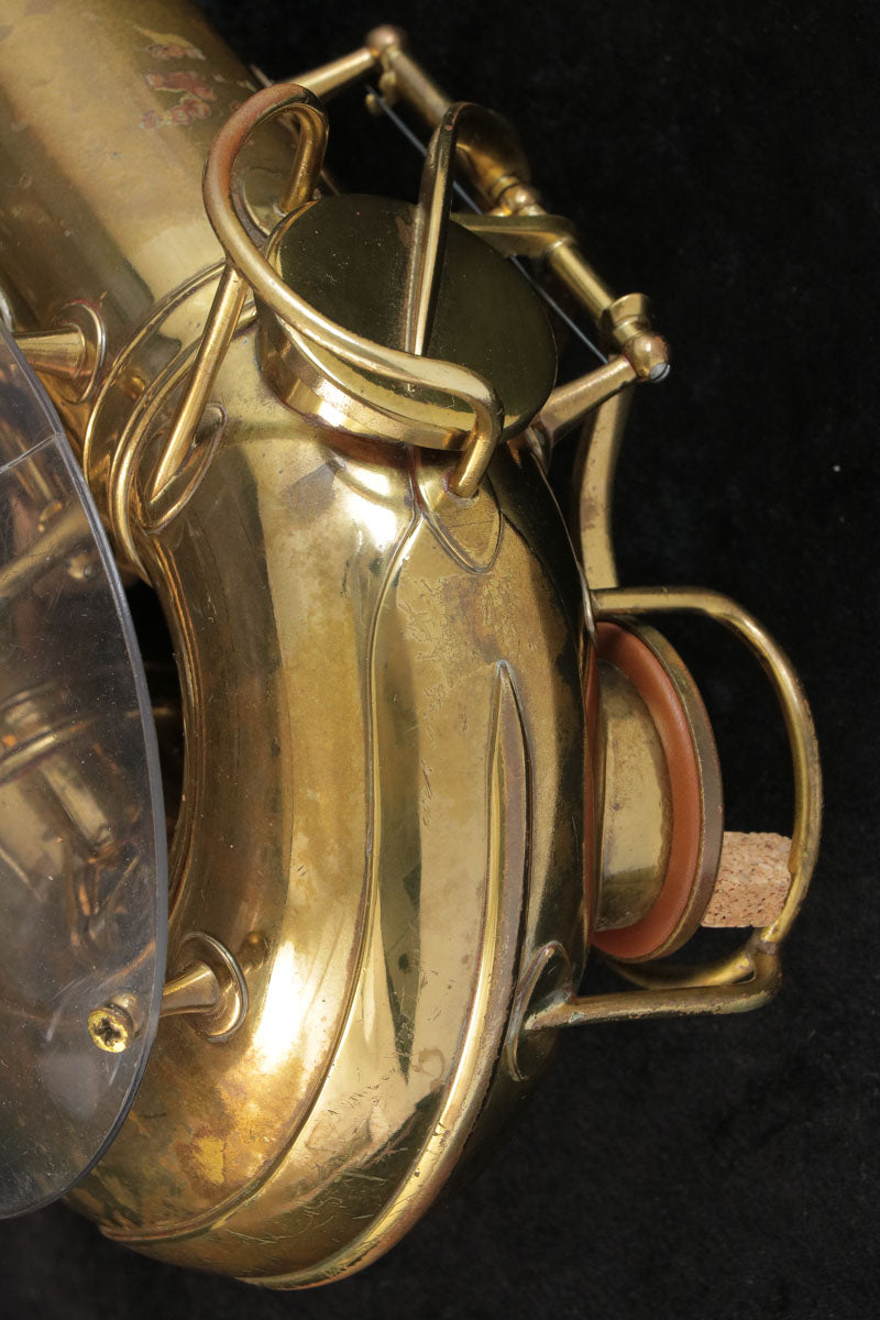 This model was manufactured around 1950 with lacquer finish, rolled tone holes, and plastic key guard.