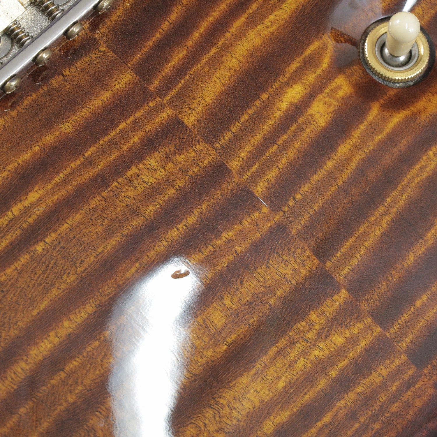 ボディには極上アーティストグレードのカーリーメイプルトップ、マホガニーバック、シンカーマホガニーネックの組み合わせ。指板にはしっかりと目の詰まったインディアンローズウッドを採用。
