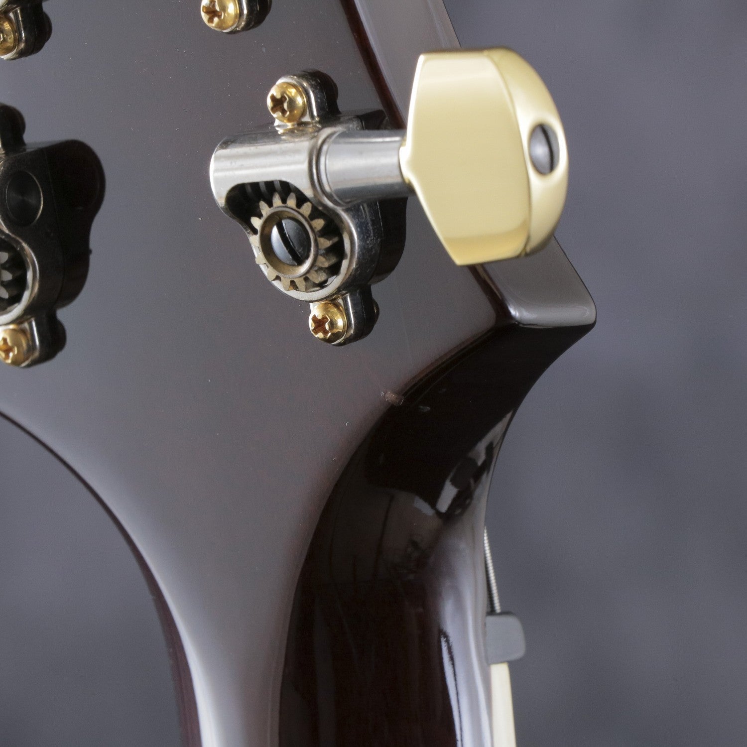 極上アーティストグレードのカーリーメイプルをトップに採用し、ブラックゴールドバーストと相まって高級感のあるルックスに仕上がっております。